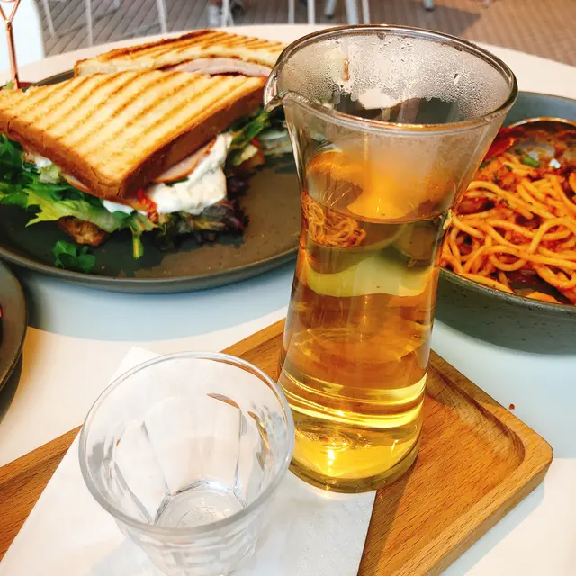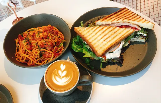 一早起身出去荃灣,當然要飲杯咖啡☕️提提神,老婆被呢間cafe嘅大落地玻璃吸引咗,話要坐窗邊吸收天然Vitamin D。由於Weekend關係,全部食品飲品都係單點。1) 香煎虎蝦配蘆筍辣蕃茄汁意粉 $1082) 火雞胸白磨菇洋蔥意大利三文冶$663) Cappuccino Reg $364) 桂花龍井手沖茶$55大大隻虎蝦肉厚鮮甜,爽口彈牙,已經去殻去蝦腸。蕃茄汁濃稠度做得剛好能掛在意粉上,味道香濃帶微酸,開胃好食。三文治份量大及餡料豐富,有沙律菜、火雞肉、火腿、磨菇、蕃茄,如果沙律醬能減少啲就更好。Cappuccino 香濃幼滑,沒有苦澀味👍。桂花龍井茶就無特別,而且只能泡一次,收費略貴。今次顧客服務體驗感覺不是太好。1)店舖用開放式門口,但店員站在櫃枱內與客人缺乏接觸,客人以為係自行度體溫及入坐,原來係要被安排的。2)落地玻璃旁有3⃣️張圓枱,但中間的一張因疫情而停用。其實好多客人都喜歡坐窗邊站,店舖可加隔板,然後繼續供客人使用。3)店舖地方細,枱與枱距離好近,沒有放輕鬆嘅感覺。…Read More