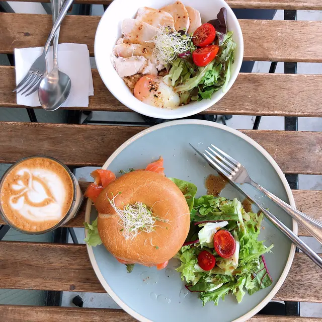 西營盤真係好多Cafe☕️,今日同老婆嚟到Tuckshop by social club,樓底高,環境Chill,好多人都帶埋手提電腦,一邊飲咖啡一邊工作或溫習。一張長枱坐滿人,亦有人好freestyle咁坐樓梯,但我認為人流太多了。Smoked Salmon Bagel $70Bowl with Sous Vide Chicken $75cappuccino $40食物砌得好靚,賣相吸引。沙律菜新鮮,雞肉有點柴皮,三文魚肉質有點實。兩份餐嘅份量都足夠,味道就一般,沒有獨特之處。呢度適合同朋友嚟傾吓計,消磨下時間都唔錯!食好物就要另覓地方啦!…Read More