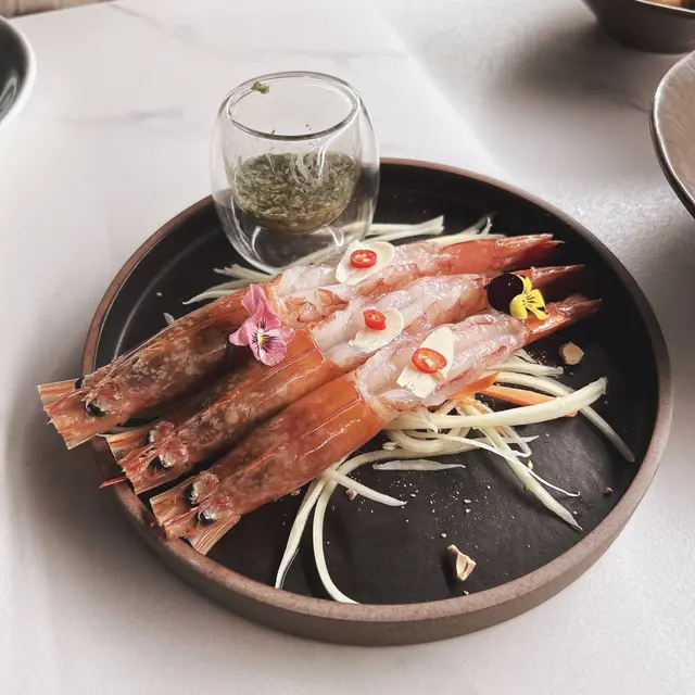 機緣巧合下同朋友搵到呢間位於中環the workstation既隱世創意泰式fusion菜,無論係室內定室外既環境都相當美觀,室外位置更仿如世外桃源,充滿浪漫氛圍,超適合打卡。🦐 Red prawn sashimi thai sauce 238紅蝦有手掌咁長,肉質結實彈牙,鮮味十足,配埋清新既泰式薄荷sauce,味道絕配。🐚 Hokkaido scallop with salmon roe and uni 328北海道帶子刺身切片配海膽同三文魚籽,仲有花瓣既裝飾,又係一道美觀且可口既料理。一直都好怕食到海膽嗰陣腥味,但入口更品嘗到既係帶子既鮮味,加上味道稍鹹既三文魚籽,口感更為豐富。🥘 Tom yum bouillabaisse with crispy rice 158冬陰公湯酸度岩岩好,椰香味亦十分濃郁,口感creamy,惹味得嚟又唔會太辣,用茶壺型器皿盛載,會較為方便亦賞心悅目。脆米上有青口、蜆同冬菇,脆米吸收哂冬陰湯後依然脆口。🌮 Thai lettuce wrap in taco style 238上菜既時候勁誇張,仙氣十足,有種天上有,地下無既感覺。Taco版生菜包肉,超級足料,每一啖都係肉,豬肉碎以芫茜、魚露、青檸、辣椒等香料炒香,用生菜同taco包住一齊食就可以中和鹹香,更加開胃。🥩Us prime rib-eye steak 280G with bone marrow 598煎至粉嫩色既西冷牛扒,肥瘦均勻,肉汁鮮嫩可口,旁邊仲配左牛骨髓,只以黑椒同海鹽調味已經好夠味,牛脂味極香。🍨 Coconut mascarpone parfait with mango jam 128椰子口味芭菲加入mascarpone 整成雪糕既口感,側邊仲有冰凍既芒果醬,彷似食緊淋滿椰汁既芒果糯米飯。🥧 Pecan tart with lime sherbet 108香甜可口既核桃撻配上清新解膩既青檸雪芭,為今餐畫上完美句號。🧉 Island of desire 148🍹 Wanderlust 148兩款飲品都係精心調配,連杯都非常精緻,打卡一流呀🥹喜歡甜口嘅朋友應該會更為鍾意前者,我個人就比較鍾意後者,有香濃既斑斕味但又有茉莉花中和椰子既甜味,清香可口。getaway環境優美不在話下,室外位置真係彷如離開鬧市,而且每道料理都充滿心思,非常精緻,而且上菜用既每一款餐具都好有品味,令人心情更加愉快,呢個價錢絕對係一分錢一分貨。…Read More