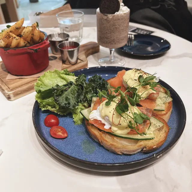 今次已經係三訪呢間位於觀塘東廣場既 Comfy by Chef's Stage,裝修簡約,地方闊落,環境舒服,食物亦好高質,每次既體驗都非常滿意。鮮果蜜糖穀物乳酪 $98新年期間成日都食得咁heavy,今餐就打算食light d,近年來都好興yogurt bowl,除左健康,擺盤精美搶眼,賞心悅目。yogurt本身無咩甜味,配合唔同水果同granola一齊享用就有唔同口感同味道啦!煙三文魚賓尼迪蛋酸種麵包 $108店家使用蘭王蛋,熟既程度剛好,恰到好處既流心,一切開就係橙紅色的蛋黃,色澤鮮艷,蛋香濃郁。最得我心既係個酸種麵包,外面焗得好香脆,但內裏保持小小煙韌有咬口,唔會比上面既醬汁整淋左。黑松露薯條 $68香脆可口嘅薯條上面灑上黑松露碎,配上黑松露沙律醬同茄汁,食到停唔到口🙈牛油果香蕉奶昔 $46曲奇奶昔 $46前者較適合追求健康既朋友,甜度較低,味道清新可口。後者適合愛甜既朋友,不過對螞蟻人嚟講算係甜度適中,唔算太驚艷。上兩次到訪都會叫明太子意粉,佢地既意粉同薯條都係我私心推介,包保滿意,如果去開觀塘,都推薦大家去試下comfy by chef's stage,無論周日放工後定周末同三五知己嚟傾下計、食番餐飯都係個好選擇。…Read More