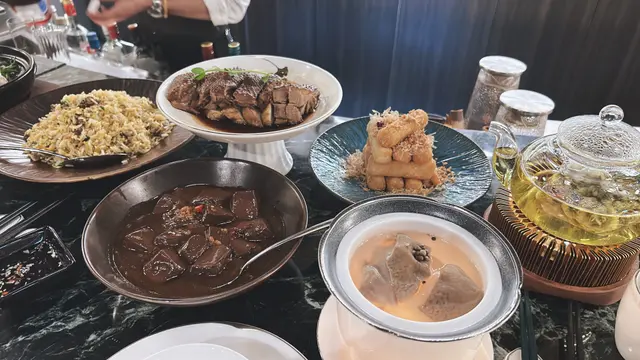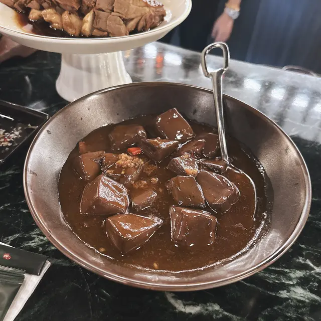 今日朋友生日就嚟到iSquare呢間主打新式潮州菜既餐廳,餐廳設計有格調,氣氛浪漫,放工同親朋戚友食個飯或者飲番杯又得。風味脆茄子 $98炸到金黃色嘅茄子,咬開係煮到軟糯既茄子,外酥內嫩,非常開胃。韮菜豬紅 $98韭菜鋪起底,面頭係滿滿嘅豬紅,醬汁濃稠,無腥味而且好入味。獅頭鵝件 $298鵝件滷得非常入味,唔會死鹹,肉質鮮嫩,唔會鞋口,底層鋪左一層嚟滿滷水汁嘅豆腐。懷舊春菜煲 $198寒冷嘅天氣最適合食熱辣辣嘅菜煲,芥菜吸收晒清甜嘅湯汁,口感鮮香回甘。鹹菜胡椒豬肚湯 $138天氣咁凍,飲番碗胡椒豬肚湯可以暖下胃,胡椒辣既程度恰到好處,唔會感覺太刺激。蜆肉鵝肝炒飯 $228炒飯粒粒分明,好有鑊氣但又唔會有油膩感。有蜆肉鮮味為炒飯增加鮮味,而鵝肝就令成個飯口感更creamy。由入餐廳門口到離開,都有熱情嘅服務,除咗食物令人滿意,服務員嘅態度到令人讚嘆不已。除咗我同朋友慶祝生日之外,都有見到其他客人同屋企人一齊慶祝生日,氣氛相當好,非常推薦呢間餐廳👍🏻👍🏻…Read More