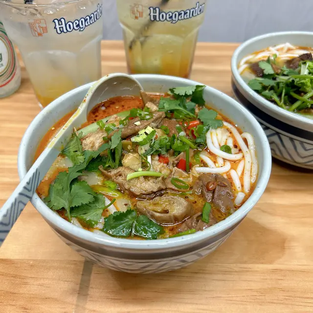 大埔又開咗新餐廳,位於八號花園,環境整潔、光線充足,令人感覺舒服。見到佢哋主打用豬骨熬煮嘅湯底,我呢個米線狂熱者就梗係要試吓!酸辣肥腸粉 (小辣) $60先講湯底,佢哋嘅小辣真係唔係講笑,再加上酸辣湯底,係加倍惹味,同埋真係幾辣,我係一路食一路流晒眼淚鼻涕,但都停唔到口,不過酸味可以再重啲。份量超多呀,肥腸洗得好乾淨,唔會有腥味同臭味。而且醃得好入味,煮得好淋身,滿意!紅燒牛腩粉 (小辣) $60呢碗嘅湯頭同另一碗一樣,不過冇咗酸辣味,同樣都係小辣,但都係幾刺激下🤣朋友唔鍾意食肥肉,佢哋每一舊牛腩都肥瘦均勻,瘦得來唔會柴,又係好入味同淋身,只係牛腩份量可以再多一啲,但都係用心之作。肥腸粉同牛腩粉都係比較粗身嘅粉,有啲似瀨粉,似保留左一啲咬口既粗米線。涼拌土豆絲 (小辣) $30香辣爽脆既土豆絲有少許酸味再加上辣油,非常開胃。手打牛丸 $75手打牛丸係佢地既招牌菜,簡直係必試!我哋叫既兩碗粉都加咗辣,試唔到佢哋自家熬製嘅豬骨湯,點知牛丸嘅湯就係呢碗冇味精嘅豬骨湯。湯底好香濃,可以就咁飲都唔會覺得口渴,牛丸爽口彈牙,物超所值!芒果梳打 $15菠蘿梳打 $15喺大埔諗唔到食咩可以試吓黔滋味,用心製作嘅小店,真係會有驚喜。…Read More