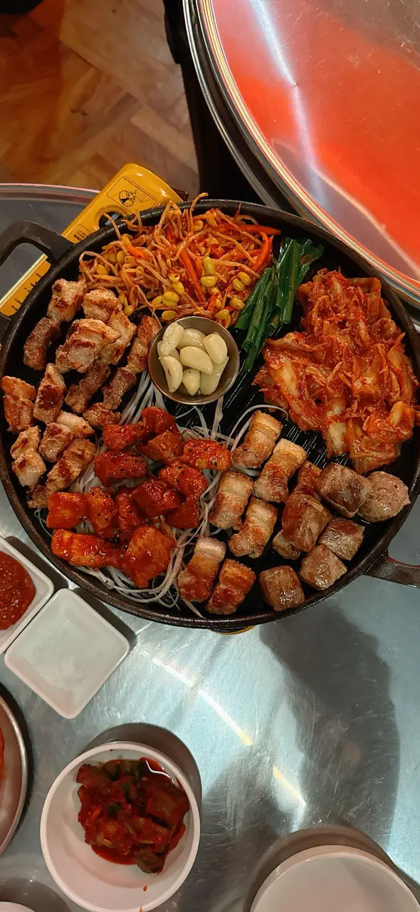 餐廳環境似韓國大排檔👍🏻氣氛一流,適合一大班人飲嘢吹水!食物質素不錯,價錢合理,有韓國oppa幫你燒肉,視覺效果一流,🤣good good good 🤣