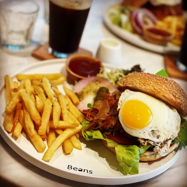 這間是位於青衣城二期的 BEANS 荳子。其他分店其實都久不久會去幫襯吓,今次嚟到青衣城搵食,就緊係要幫襯一下。嚟到仲係午餐時間,點咗份$86嘅手撕豬仔骨漢堡,包薯條同一杯飲品。份手撕豬仔骨漢堡 簡直係誠意之作,漢堡中間層豬肉絲,就好似佢地嘅良心一樣滿到瀉、仲有太陽蛋同焦糖洋蔥,加埋個醬汁,簡直一流。唯一嘅缺點係實在太大份,唔可以拎住個漢堡送入口食,一定要用刀叉。大力推介💪🏼…Read More