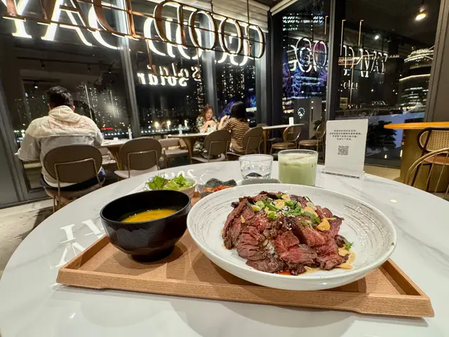 晚飯想食封門柳飯,要叫set冇得單點,配個南瓜湯沙律泡菜同埋螢光色嘅小食,除咗沙律菜之外,其餘三樣可以skip,個飯OK,肉有少少嚡,但係份量足,夠飽試咗杯開心果燕麥奶,sorry,冇開心果味冇燕麥奶味乜味都冇,係一杯淺綠色嘅奶水另外叫咗個蛋糕,正正常常mousse底,大啖大啖就食完,唔太甜唔係好好食,亦都唔係好難食,如果可以再揀,我會skip埋單 $245可能呢度比較適合日頭食lunch或者下午茶,塊大玻璃望出去應該幾靚,夜晚見到對面商場外牆閃到暈…Read More