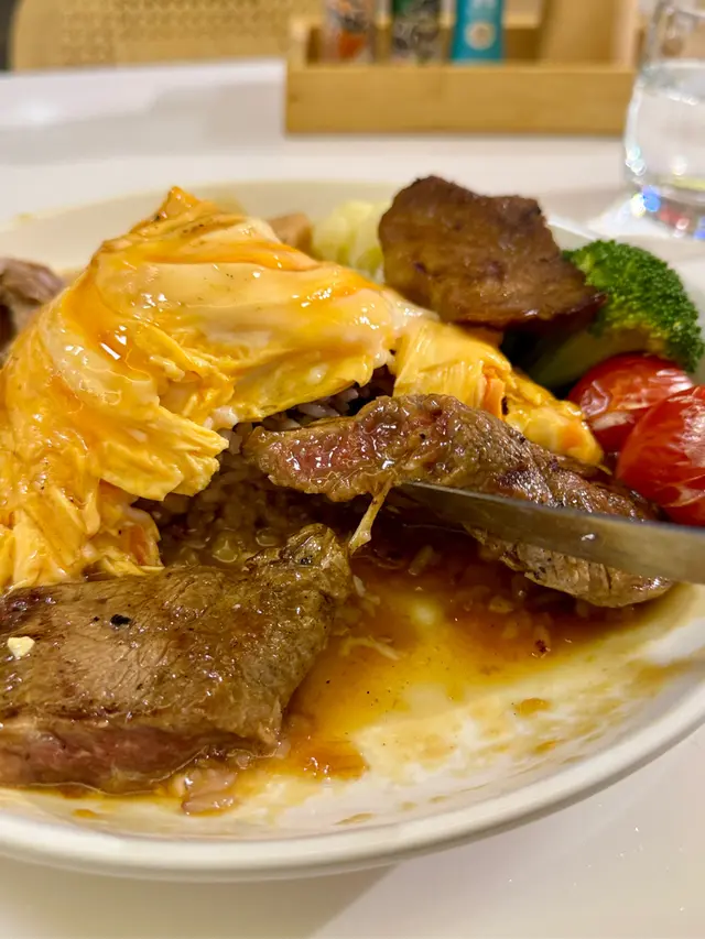 點咗牛魔王旋風蛋飯,有肉眼、牛腰、牛舌,配16穀米飯, $278 +1平啲嘅肉眼飯有飲品加配優惠,呢個貴啲嘅飲品要另叫食呢個飯好辛苦,要刀叉匙羹並用,啲飯一大篤喺中間,都冇位俾你切肉眼,份扒好實切唔開,而且有筋,食咗一啖就放棄好彩仲有牛腰牛脷,牛腰調味重啲,牛舌冇味嘅,好彩兩樣都咬到,個蛋係幾滑嘅,蔬菜冇調味,咬落去係水味見隔籬枱有個調味架,問個黑衫阿姐,阿姐口咬住嘢邊咬邊同你講嘢仲有隻水杯,本身好乾淨,阿姐戴咗手套執完隔籬枱過嚟斟水,隻杯好大Pat手指印最後個水吧,有兩個一模一樣嘅水桶唔覺有label,一個好似浸緊毛巾,另一個好似浸緊茶,佢哋點樣分辨啲筒嘅用途呢?結論:冇人嘅餐廳,唔好隨便入去…Read More