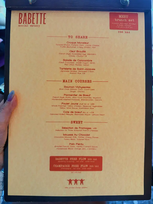 療癒的週末莫過於在享受一頓從前菜到甜品都滿分的Brunch。 BABETTE Social Eatery 的法式Brunch每一道菜都是一場巴黎風的浪漫饗宴🇫🇷✨ 🧡 To Share:優雅開場 🥪 Croque Monsieur經典法式火腿芝士多士升級登場!烤得金黃香脆的麵包夾着 巴黎火腿與 Comté芝士,再以 松露白汁與 炸紅蔥點綴,香氣濃郁🍳 Œuf Brouillé法式炒蛋滑如雲朵,加上 明太子、香蔥與一抹 chorizo煙燻油,鹹香層次分明,是驚喜兼具的開胃小品🥒 Salade de Concombre爽脆青瓜伴上希臘乳酪與茴香,一口冰爽一口酸香,微微檸檬氣息讓味蕾瞬間清新🦪 Tartelette de Saint-Jacques日式帶子塔融合 海苔忌廉與 三文魚子,濃郁海味在盡在一口small bite 🍗 Main Course:Poulet Jaune🫕 主菜選了法國黃雞半隻(Poulet Jaune)—— 雞肉肉質嫩滑,蘊含淡淡油香。 與時令蔬菜一同浸煮於白酒忌廉汁裡,質感細膩,酒香四溢。配上香軟的雞油飯,每一口都是家常的溫度與法餐的優雅結合!唔好講笑,亦不太喜歡澱粉的我,都添了很多碗飯😂🍫 Sweet Ending:夢幻法式甜點時光💫 🍞 Pain Perdu — 法式Brioche吐司柔軟的法式麵包泡滿 香草吉士醬,再以 手工血橙果醬*點綴,果香酸甜之間帶點橙酒(Cointreau)香氣,微微酒韻收尾完美。 🍮 Mousse Au Chocolat70%朱古力慕絲濃郁滑順,入口瞬間化開,帶着 咖啡與 香草氣息。 上方覆滿脆焦糖與烤果仁,為濃滑口感添上完美脆感。每一口都是層次交錯的幸福滋味。…Read More