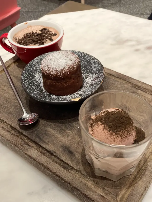 年初二, 午餐後想吃甜, 不少心水也沒有營業, 最後來到綠楊坊, HeSheEat照常提供服務, 那就不用多說, 來個午後小甜聚.朱古力三重奏 $72: 8.5分, 當然不是第一次來HeSheEat, 綠楊坊店就是第一次. 由朱古力三重奏開始, 一客甜品, 包括朱古力慕絲雪糕, 朱古力心太軟, 以及凍朱古力特飲. 朱古力心太軟始終是這裡的經典, 流心度合格, 未算是澎湃的感覺, 但以這個份量來說, 已經令人滿意. 朱古力味道很濃烈, 而質感亦合宜. 喜歡的話, 可以配上朱古力慕絲雪糕, 層次感不俗, 雪糕不會太有冰感. 另外, 凍朱古力特飲就給小晴晴清掉了, 她是相當喜歡呢.岩鹽焦糖厚焗鬆餅配雲尼拿雪糕 $58: 8分, 接下來的是岩鹽焦糖厚焗鬆餅配雲尼拿雪糕, 厚焗鬆餅加上牛油, 質感軟綿, 蛋香突出, 點上楓糖及焦糖醬, 味道甜美. 配上雲尼拿雪糕, 冷熱交融, 也不錯.士多啤梨焦糖脆脆梳乎厘班戟 $98: 8.5分, 最後來到的是士多啤梨焦糖脆脆梳乎厘班戟, 震騰騰度令人滿意, 空氣感對辦, 質感輕柔, 很有蛋香. 配上焦糖脆脆同吃, 加強了層次感, 至於士多啤梨就全部留給小晴晴吃.無論朱古力三重奏, 岩鹽焦糖厚焗鬆餅, 以及士多啤梨焦糖脆脆梳乎厘班戟皆是甜美之選, HeSheEat還是吃甜的好選擇.…Read More