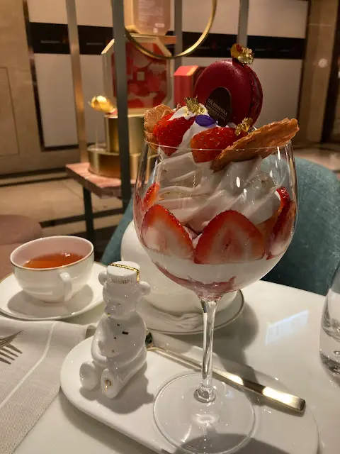 是下雨天,路過半島,想起地庫的The Peninsula Boutique & Cafe,不如看看還有沒有位。剛好在下個時段還有一張空檯,真好,這天看來是好日子。半島的餐廳,嘉麟樓,Gaddi's,Felix,Chesa,The Verandah,大堂茶座,以及今佐等等,每個地方,都有不少回憶。這天在The Peninsula Boutique & Cafe,添上三口子的專屬片段。很有氣派的地方,設計,用色,擺位,皆是做品牌要學習的對象。其他四檯客人也是吃下午茶,我們一心為了來吃芭菲,那還是專心吃甜吧。一家人也愛甜,其實,也是個福氣吧。Classic Parfait 經典芭菲 - Hokkaido milk soft serve and fresh strawberries and macaron over classic strawberry sponge 北海道牛奶軟雪糕,士多啤梨及馬卡龍配士多啤梨海綿蛋糕 $155:9.5分,從幾款芭菲中,選來的是經典芭菲,是晴晴的選擇。份量十足,三個人分吃,也不會有問題。無論是賣相,味道,配搭,也是頂班的。主角北海道牛奶軟雪糕,質感很滑溜,奶香突出,完全沒有冰感,配上鮮甜的士多啤梨同吃,很甜美。底下的士多啤梨海綿蛋糕,吸收了北海道牛奶軟雪糕的精華,質感鬆軟,也很討好。再加上經典的馬卡龍,就是經典的芭菲。Signature Mooncakes With Soft Serve 馳名月餅配軟雪糕 - Mini Egg Custard and Mini Lychee Black Tea Flavoured Egg Custard Mooncakes complemented with Hokkaido milk soft serve 經典迷你奶黃及荔枝紅茶奶黃月餅配北海道牛奶軟雪糕 $145:9分,快到中秋了,就應應節,吃馳名月餅配軟雪糕。迷你名茶奶黃月餅一盒八個月餅,賣價$448。這個set,單計兩個月餅已經值$112了,再加上一杯軟雪糕,以及一杯自選飲品,真的堅抵。這個是The Peninsula Boutique的月餅,不是嘉麟樓的,但也是有水準的。荔枝紅茶奶黃月餅,帶清甜的荔枝紅茶香,奶黃亦香甜,只是稍嫌餅皮以迷你月餅來說,是不夠薄身。至於經典迷你奶黃月餅,給晴晴全部搶吃了,味道如何,您下次見到她的時候直接問她吧。軟雪糕繼續是北海道牛奶軟雪糕,當然也是高水準之作,只是月餅跟軟雪糕,沒有化學作用,不用一口月餅,一口軟雪糕地吃吧。Signature Scones 經典英式烘鬆餅 $120:8.5分,說到吃甜,又怎少得經典英式烘鬆餅。從前,是很愛吃這裡的鬆餅,但這天吃到的,熱度不足。是我們拍照太久?或許吧。這客經典英式烘鬆餅,質感是鬆脆的,牛油香亦俗,加上經典的奶油及果醬同吃,配上一口伯爵茶,還是令人滿意的。Hot Chocolate 朱古力 / Earl Grey伯爵茶:9分,馳名月餅配軟雪糕,以及經典英式烘鬆餅也配自選飲品的。半島的熱朱古力,是無得輸的。朱古力味道相當濃烈,熱辣辣的狀態下去喝,很香濃。至於伯爵茶,從來是配鬆餅的好拍檔。要吃的話,就要即日前來訂當天的位,是有點麻煩,但為了精彩的甜點,是值得的。反正,人要留港,吃的甜,也要吃得有意思。The Peninsula Boutique & Cafe的經典芭菲,經典,高質,甜美。…Read More