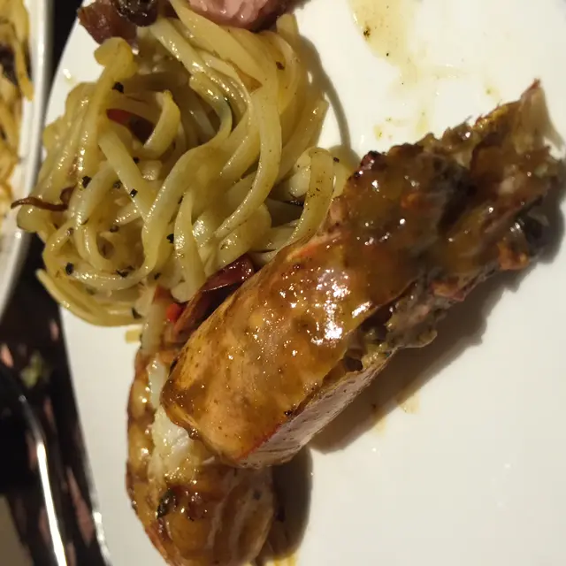 BTW, 蝦子麵食得出吾算係貴價既麵, 不過不失好彩價錢吾係貴, 中意食鵝肝既人都值得一試吾知係咪留左單, 出左個豬手比我先, 一見到就覺得好大份! 感覺早知叫一個大盤就算....我對豬手無特別既廦好, 不過呢個豬手的而且確燒得好好食....個外皮燒得好脆口好香, (絕對值得一讚!) 中間有小量既肥膏先再到肉, 分佈得好平均~ 燒得咁香口既同時肉質依然好嫩好JUICY~而且, 有一樣都值得讚既係食落口都仲係熱辣辣出哂煙~ 呢點吾係間間都做得到同做得好食~最後尼既係大蝦PASTA, 咩麵吾係記得好清楚啦....