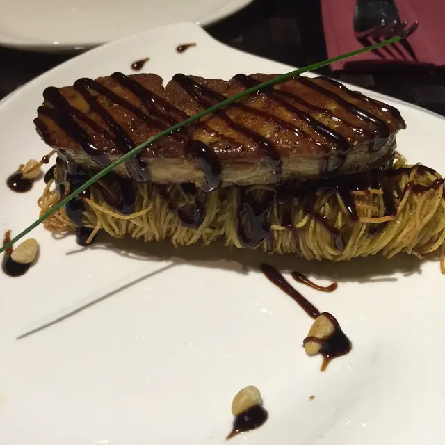 一日收工早左, 曾經有客介紹過呢間既豬手, 所以就暮名而來朋友話過間野好似好細,如果無BOOK檯既情形下, 最好打一打電話問下有無位鋪頭位置係內街, 成條街都好多食店, 但可能市道吾好, 經過每一間食店都吾多人....而呢間野個位置大概到街尾, 感覺更加寧靜同朋友揀左一個頭盤, 兩個大盤 -第一個 : 鵝肝蝦子麵鵝肝煎得岩岩好, 外脆內軟, 因為有D餐廳會煎得太熟, 會令鵝肝既油脂已經煎到乾哂....ANYWAY~但呢個頭盤就無啦~而個蝦子麵應該略為炸過或者BURN過外圍, 一樣做到外脆內軟既效果最後用舊有既做法, 用左黑醋上面, 食落吾錯, 蝦子麵索到鵝肝既油, 雖然吾算太多但再加上黑醋既甜酸味, 感覺岩岩好, 不過覺得好似自己屋企都煮到