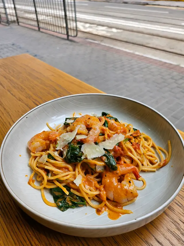 呢間係其中一間堅尼地城我標記咗一定要去嘅cafe! 平日食午飯時間去到俾我坐到最後一個位✌🏻😊==============================大蝦辣意粉👍🏻大蝦意粉配香辣蕃茄醬汁, 非常開胃😋單餐仲可以選擇是日例湯或者沙律, 我今日就飲咗蘑菇忌廉湯👍🏻=============================注意:呢間餐廳仲喺pet friendly😇 有毛孩嘅大家就可以帶埋佢地一齊嚟啦🐈🐕…Read More