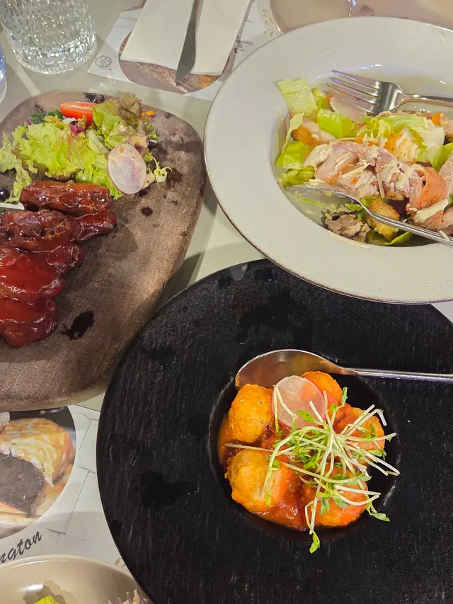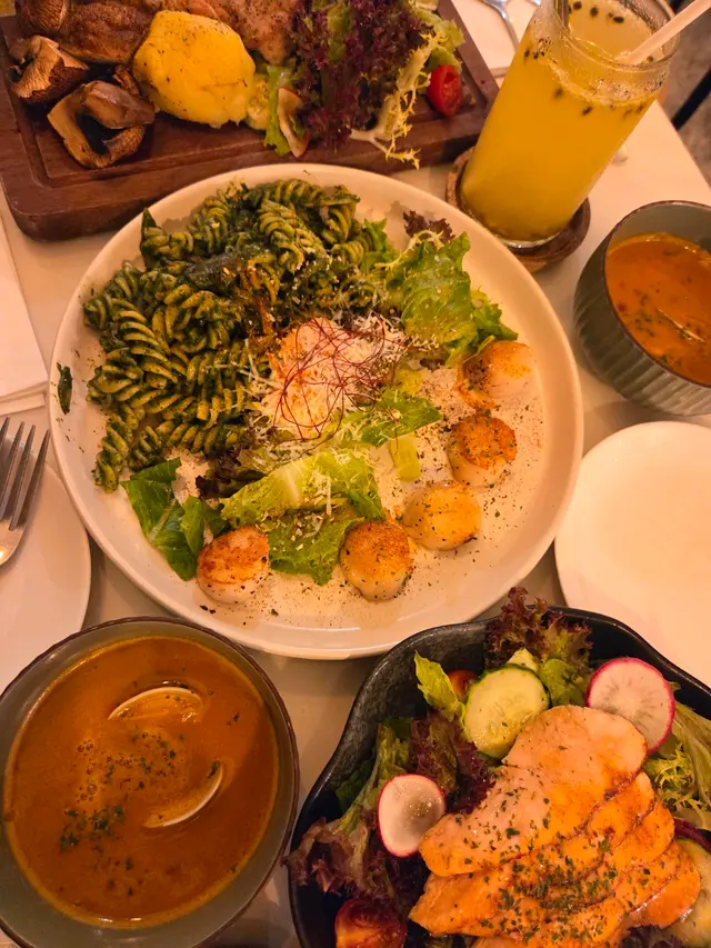 Parallel 餐廳位於觀塘,以半自助餐形式為主打,深受食客歡迎。主菜選擇豐富,包括多款手工意粉及優質牛扒,滿足不同口味需求。自助餐區更是亮點,提供種類繁多的前菜、小食及凍海鮮,包羅萬有,讓人回味無窮。不論是朋友聚餐還是家庭聚會,Parallel都是理想之選,提供高質素的美食體驗。今晚跟朋友點選以下兩款主菜:🩷 卡邦尼QQ彈簧麵(鹹蛋)這款意粉將傳統卡邦尼結合鹹蛋風味,帶來獨特的鹹香。麵條口感Q彈有嚼勁,鹹蛋醬濃郁滑順,與煙燻培根完美搭配,層次豐富但不膩口,是一道讓人回味的創新美食。🩷 經典黑胡椒手工意粉(帶子)手工意粉搭配新鮮帶子,口感細膩且鮮甜多汁。黑胡椒醬汁濃郁而不嗆,帶出微辣香氣,增添味覺層次。麵條吸附醬汁,每一口都散發誘人香味,適合喜歡經典口味的食客。至於自助餐區,以下美食都非常推介:💚 冷切肉盤精選多款優質冷切熟肉,包括火腿、臘腸與熏肉,搭配橄欖與香草,味道濃郁豐富,適合作為前菜或小食。💚 煙三文魚細緻煙燻帶出三文魚的鮮美與脂香,口感柔滑,配以酸豆,微酸口感可以中和煙三文魚的油脂,提升鮮味,清新爽口,令人回味。💚 水牛芝士車厘茄意大利經典搭配,濃郁滑嫩的水牛芝士與鮮甜多汁的車厘茄,灑上橄欖油與羅勒葉,簡約卻不失風味。💚 雜果沙律多種新鮮水果如哈密瓜、菠蘿及桃混合,搭配輕盈酸甜的沙律醬,清新健康又解膩。💚 翡翠螺新鮮肥美的螺肉,搭配翠綠蔬菜或檸檬汁,質感彈牙,味道鮮美,是一道鮮香誘人的凍海鮮頭盤。…查看更多