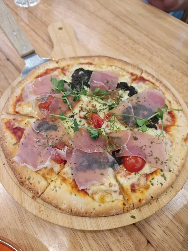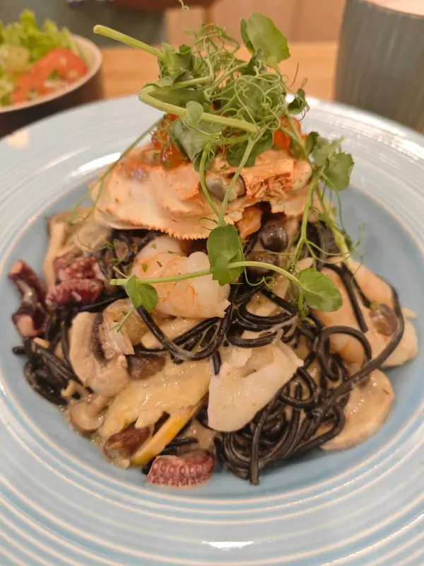 今晚我同朋友去咗位於鑽石山嘅WM Cafe & Bar食晚餐。入到去,環境好舒服,啲燈光柔和,真係好適合傾偈。我哋叫咗兩份是日餐湯,味道清淡又鮮美,開胃至極;然後上咗餐前沙律,色拉新鮮,配搭得宜,令人食得開心。之後,我哋試咗小食,吉列炸蠔兩件,外脆內滑,配上特製醬汁,仲有柚子雞翼兩件,味道酸酸甜甜,正好。接住嚟,黑松露風乾火腿薄餅真係驚喜,薄餅底薄脆,火腿味道濃郁,非常配搭。最後,我哋點咗蟹膏海鮮墨魚意大利粉,意粉煮得啱啱好,蟹膏帶出海鮮嘅鮮味,口感一流。飲品方面,熱朱古力兩杯,香濃可口,完美收尾。總括來講,今次晚餐真係好滿意,下次仲會再來!…Read More