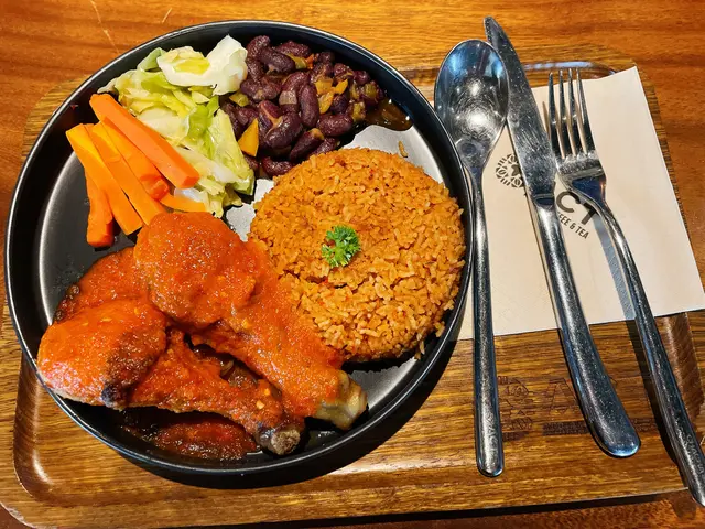 據我所知,香港係得兩間非洲人主理嘅餐廳,一間喺重慶大廈,另一間就係呢間。呢間餐廳相當隱蔽,喺黃竹坑一座工廈入面,出𨋢果陣仲以為行錯路!餐廳係可以睇到無敵大海景,亦有好多特色畫作,好chill!West African Chicken & Jollity rice $125呢個飯嘅米粒偏長身,口感相對較硬,而且用蕃茄、洋蔥、辣椒製成,好有風味!雞槌上面係滿滿嘅醬汁,醬汁係點到即止嘅辣,好味得嚟又唔會過辣!而其他配菜之中,啲豆又係辣辣地,反而係啲菜同蘿蔔就比較dry!Smoked salmon Rolex & house salad $118呢個卷物相對重料,有三文魚、洋蔥、三色椒等,味道唔會散收收,係blend得埋一齊。卷物有好輕微嘅香辣味,味道唔算特別但份量真係超級多!但如果只係嗌呢個做lunch又好似有啲dry,建議可以同朋友share嚟食!…Read More