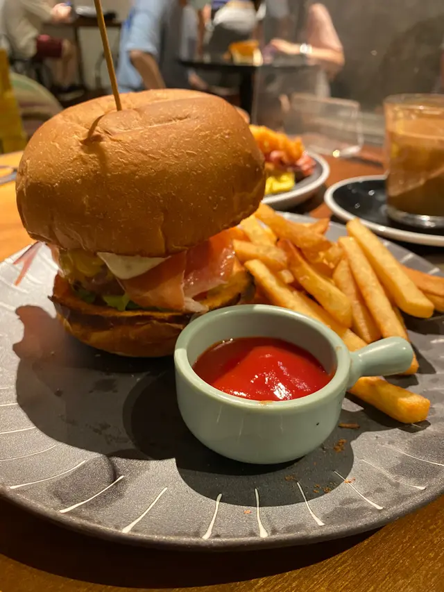 今日嚟到南豐紗廠,行到肚餓就入咗嚟呢間文青cafe試下。叫咗個All day breakfast、牛油果西班牙火腿芝士牛肉漢堡配薯條同Dirty。兩份嘢食嘅份量好夠,All day breakfast嘅滑蛋好綿,好香奶味,煙肉煎得好香唔油膩,其他配菜都係水準以上。漢堡嘅牛味好濃,雖然西班牙火腿偏鹹少少,但夾埋蕃茄同洋蔥一齊食就平衡翻仲好juicy。配埋香濃幼滑嘅Dirty,係一間幾高質嘅coffee shop。…Read More