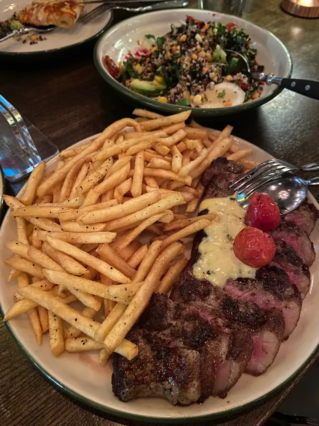 本身諗住晏晝去食蠔點知見到lunch set 都幾吸引 朋友就話不如這lunch set 叫咗H餐薄切澳洲牛柳同 F餐香草春雞餐湯係南瓜湯 無加忌廉所以係原汁原味 好介意蔬菜嘅青味要留意另外叫咗份小食青口 有忌廉同帶有少少白酒味 青口應該係新鮮嘅仲連住少少海澡😂配蒜溶包都幾夾主餐牛柳幾有牛味,配菜係烤焗翠玉瓜同薯蓉,仲有少少紅蘿蔔同蘆筍炒成嘅小菜,個人覺得薯蓉多翻啲男仔先夠飽,牛扒如果都可以揀幾成熟都好。另外燒春雞我自己鐘意多啲,雞好入味同嫩口,配菜同牛嘅一模一樣,雞好似正過牛!大家可以參考一下。最後人均消費200出頭,午市西餐嚟講偏中高價,下次可以再試埋生蠔🦪…查看更多