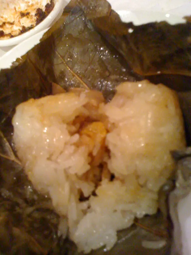 珍珠雞 -跟一般的一樣都是三小隻, 內裡有豬肉, 蛋黃, 遙柱絲, 東菇, 啖啖有料, 頗美味!