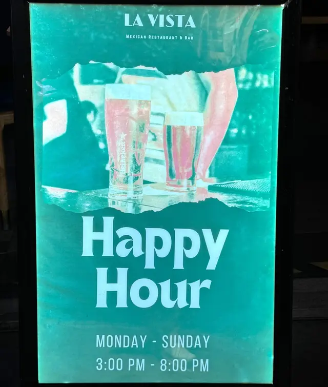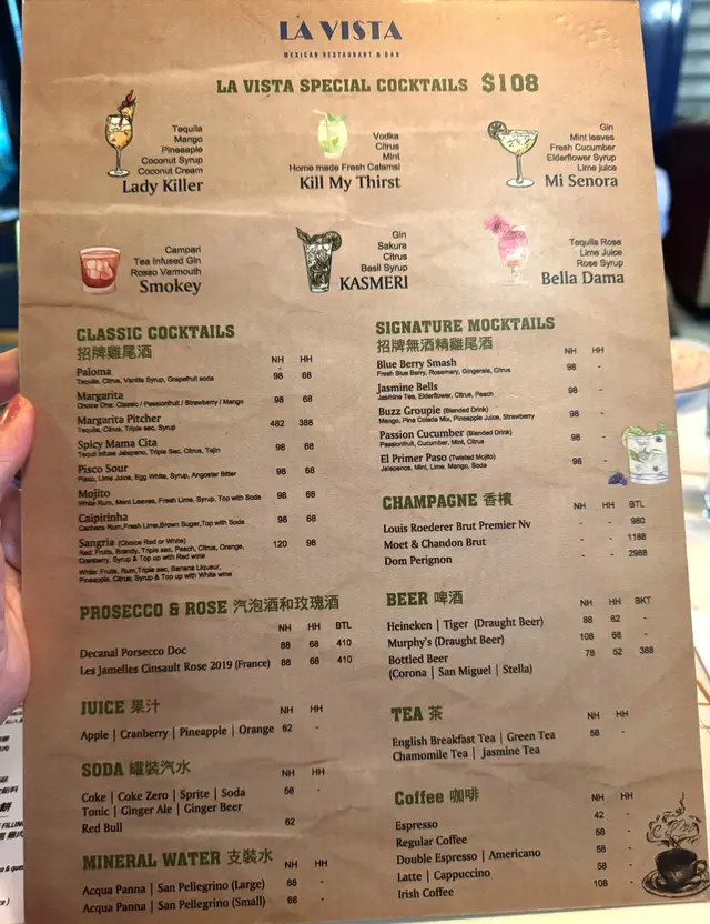 今晚放工後同事約去 Happy Hour, La Vista 墨西哥酒吧餐廳 , 位於尖沙咀天文臺道. 好喜歡這個裝修風格, 可以選擇坐室外/室內, 輕鬆地碰碰杯. Happy Hour 每天 由 3:00 - 8:00pm, 大家看看 Drink list, HH 飲品有優惠, 多款 Cocktails, Mocktails, 紅酒, 白酒, Beer, 果酒及果汁. 餐廳內佈置很用心思, 燈飾高雅, 燈光悠揚, 皮梳化座, 好靚.加上音樂, 倍令人覺好情調. 桌上有燈臺, 顏色醉人. 店員很有禮, 安排好我們的座位, 即送來餐牌及酒牌. 我們鐘意 招牌雞尾酒 Classic Cocktail, Margarita , 玫瑰 汽泡酒 Prosecco & Rose. 味清香, 帶些甜味幾好入口.大家來個 Cheers !!墨西哥餐廳 Tacos 是招牌菜. 款式選擇多. 我們點了 烤豚肉片玉米餅 Al Pastor, Pork Taco. 即制即送來. 賣相擺設非常討好. 有特式, 一客兩件. 餅皮質感夠柔軟, 含麥香. 烤豚肉片燒得香, 豚肉片份量多, 質優味濃, 伴有洋蔥, 番茄粒. 醬汁帶點少辣, 好滋味.接著 脆炸雞翼配藍芝士醬 Buffalo Wings, 一客4件. 熱騰騰一盤送上.經典水牛城雞翼美式口味, 醃料有少辣, 再沾些藍芝士醬, 更添開胃感. 佐酒一流.今晚選了主菜: 紐西蘭慢煮嫩羊腿 New Zealand Lamb Shank 用鐵鍋上臺, 份量大, 足夠兩人分嚐. 伴菜有: 沙律菜, 椰菜, 薯蓉, 洋蔥絲, 蕃茄, 甘荀, 椒絲, 配搭得宜, 組合吾錯. 先吃口沙律菜, 清新爽脆, 混上酸甜沙律醬好醒胃. 慢煮羊腿, 好稔嫩, 肉味質優, 伴上惹味醬汁 , 調味非常好.一口肉, 再來一口伴菜, 吃得有層次. 洋蔥絲, 蕃茄, 甘荀, 椒絲, 入口爽甜, 酸酸地, 特別滋味 !餐廳氣氛相當好, 食材有質素, 廚師用心煮法特別, 我們品嘗到墨西哥餐風味, 再來個碰碰杯, 好 Happy !…Read More