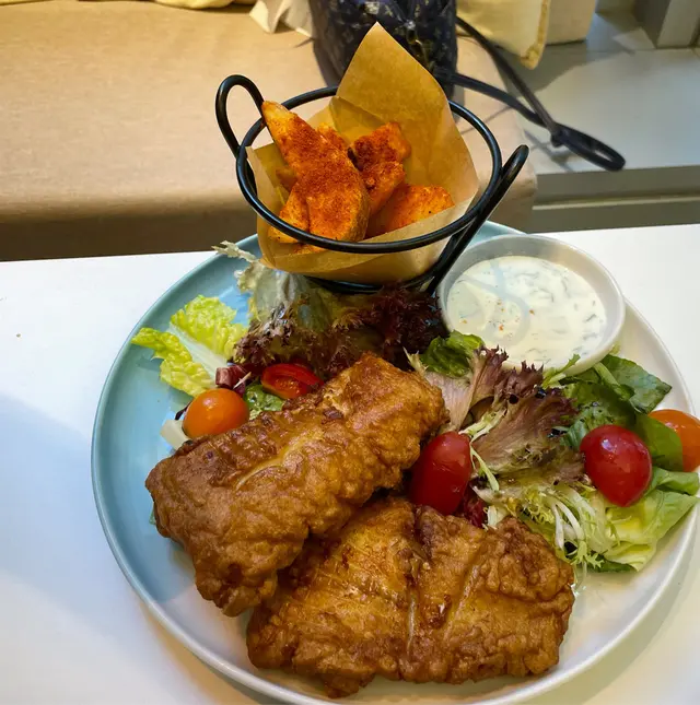 朋友推介呢間餐廳環境及食物質數都好好, 所以lunch 試一試, 上到餐廳一入去感覺好舒服好chill, 真係吾想返工, 想響呢到hea 一個下午😎, 餐廳內有些音樂令人好relax, 環境寧靜,餐廳有啲音樂又不會太拘束, 我選擇了一個近窗邊的梳化位。 開始點餐. 點了一個 all day breakfast, 竟然有燒菠蘿 ,大啡菇,沙律啲醬好特別😋 好好味。再點一個炸魚柳及薯角沙律。炸魚柳個樣一般, 但估不到切開肉質好嫩好新鮮 ,食落也不乾不油更加沒有雪味👍,不得不推介甜品 布甸咖啡雪糕, 咖啡夠濃, 倒在布甸雪糕超好味。另一個宇治抹茶巴斯克芝士蛋糕, 好濃抹茶味,鍾意食抹茶的人一定好like, 抹茶latte👍👍。 食完真係太飽了。 好美滿的一個午餐😋😋…Read More