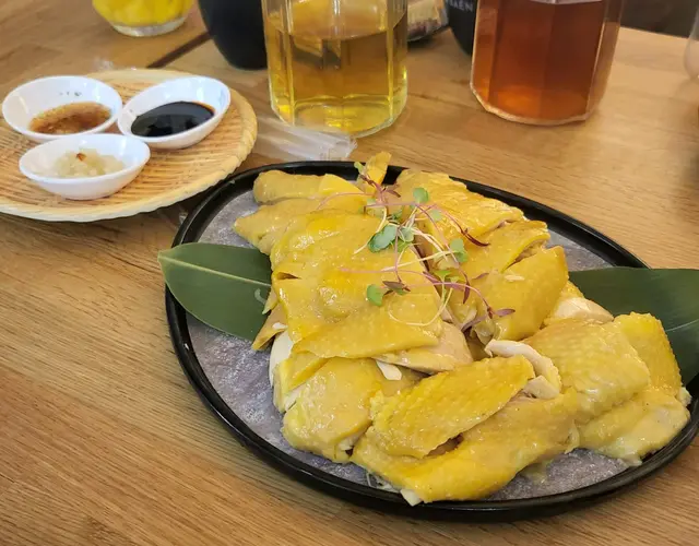 [蝦醬南乳炸雞]南乳味突出,脆卜卜雞肉好嫩 Fusion 菜 [口水西施牛坑肉]西瓜夾一塊牛坑肉配口水汁,少許辣汁配西瓜甜味又口感清涼再加牛坑部位,從未嚐過特別菜式,卻又出奇地夾。