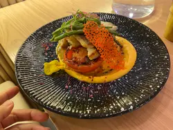 香煎比目魚配意式蕃茄龍蝦汁