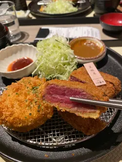 今天去了啟德新開的商場Airside吃晚飯,選擇了日本京都的人氣過江龍「京都勝牛」。京都勝牛提供內半生、外酥脆的炸牛排。除了可以選擇牛肉各部位的炸牛排套餐外,還可以配搭佐料、蘸醬等多種吃法。京都牛排以190度的高溫快炸60秒將麵衣炸至酥脆金黃,內裡維持著3分的鮮嫩熟度,並搭配上多種不同的調料。🥘和牛忌廉牛肉餅 翼板牛 二味牛御膳定食除炸牛排之外,還有醬料、蘿蔔、生菜、味噌湯和越光米。定食有四件翼板牛,和一件和牛忌廉牛肉餅。翼板牛外層的麵衣炸到金黃酥脆,內裡牛肉還是玫紅色。牛肉厚切肥美,吃起來軟嫩適中。至於和牛忌廉牛肉餅質感同樣外脆內軟,牛肉餅加了薯蓉和忌廉,口感更加滑。🥓熟成厚切豚肉柳御膳除了牛扒外,京都勝牛還提供豚肉、雞肉、三文魚等選擇。我們選擇了豚肉定食,豚肉外層金黃酥脆,內裏仍保留肉汁。做到外脆內軟,肉汁豐富。…Read More