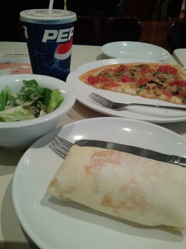 個四眼女收銀出奇地好禮貌, 未試過晌同類型餐廳 (de..fr..., etc.)見過. 好啦, 叫完搵位坐, 兩點幾唔使等位都幾好, 一個人霸四個位唔使爭.坐近窗邊無耐, 個男侍應擺隻吉碟都幾求其, 個底要自轉幾秒先等到隻碟完全貼檯. 跟住放低個沙律又好pea 咁, 但佢語氣又好好架播, 真係唔明.跟住介紹Pizza同野飲個女侍應都好有禮貌. 出奇既係, 全間餐廳 D 員工都好有笑容, 真係除左大排檔之外, 唔會咁多笑容, 仲要係斯文笑,唔係玩到唔認真個隻) .至於野食50蚊黎講我覺得算係超值.環境, 已經係用膠碟鐵刀叉, 唔係紙碟膠刀叉, 檯又乾淨, 好丫. 但頭頂有3盞射燈壞左做咩唔換呀, 扣分!由唔會再去到 ” I'll be back ", 朋友A, 你得左.…Read More