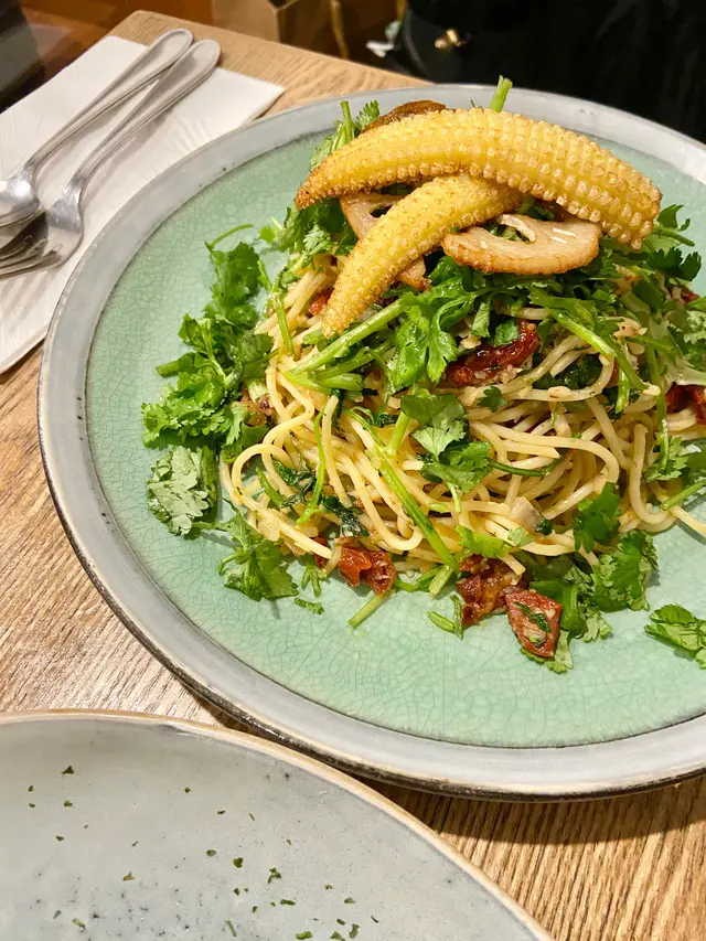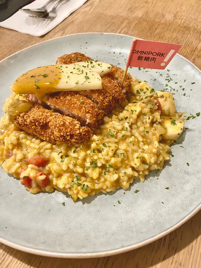 素食都可以吃得好潮。book 左晚飯時段黎到唔洗等位。餐廳細細坐位不算多。2個人黎食就唔錯喇~Order 左呢度好受歡迎嘅咖喱吉列豬扒意大利飯同埋朋友好想試嘅香蒜芫荽意大利粉。呢度d portion 真係好大份,餐牌上邊有個貼心提示,如果係小鳥胃嘅客人可以主動要求減份量,避免浪費食物☺️個意大利飯好吃而且不會太膩,吉列豬扒嘅份量都唔少仲大大塊。佢炸得岩岩好啊~唔特別講嘅話都唔覺得佢係素食。口感同味道都不會比真肉遜色。而且係有追食性,即係你會想一啖一啖咁放入口啊~因為我揀飲擇食嘅關係,就評價唔到芫荽意粉。🤣另外點左件豆腐芝士蛋糕做結尾,呢個蛋糕唔似一般芝士蛋糕嘅細滑,反而帶一點粗糙嘅口感。食落去唔太甜、芝士味都唔太濃,反而豆腐味好突出。呢個係食完都唔會有罪惡咁嘅芝士蛋糕。食物質素整體唔錯,我覺得可以encore😉…查看更多