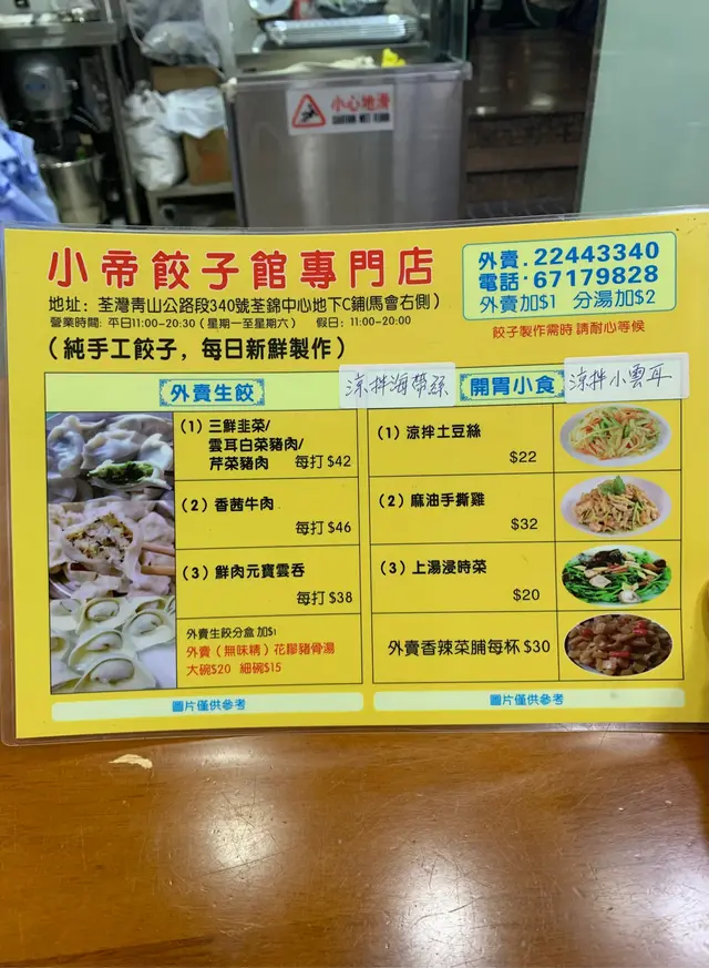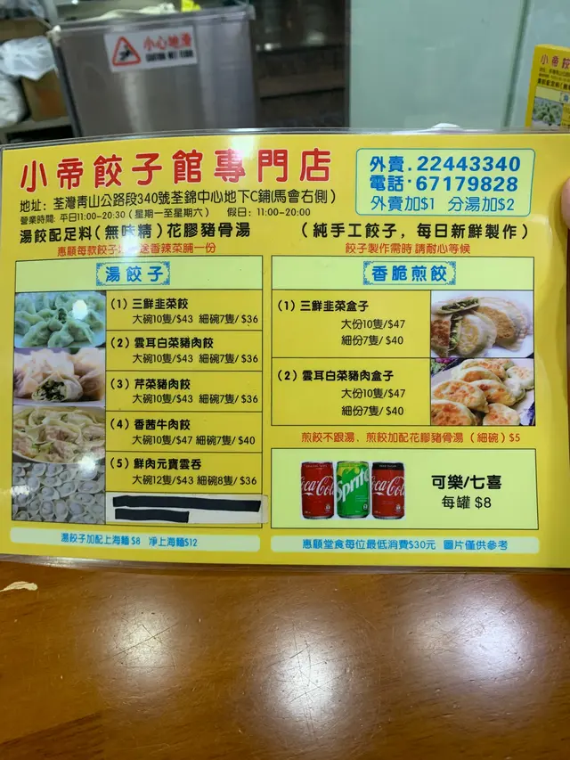去完南豐中心整眼鏡,又係食飯的時候。朋友介紹位於荃錦中心地下有一間食餃子嘅,話味道都唔錯可以去試吓。餃子種類選擇唔算多,餃子可做湯餃同煎餃,可以揀細係7隻或大係10隻,另外可以加上海麵。揀咗外邊比較少有既香茜牛肉餃,餃子好大隻,入口有好濃的芫茜味,湯底清甜飲落去都唔覺口渴。枱上有辣菜脯任你食,拌餃子食簡直一流👍🏻雲耳白菜豬肉煎餃,餃子兩面煎到金黄色,入口香香脆脆唔覺得油膩。還有麻油手撕雞同涼拌海帶。朋友話我今日好彩,平時麻油手撕雞好快賣晒,今日有食神