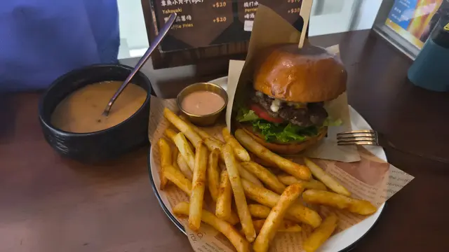 附近做嘢, 想食漢堡, 揾到呢間小店心目中香港最好食係Triple O, Baka的質素貼近.最重要的是牛肉要能肉味肉汁, 夠厚有咬口, 麵包香軟但同時皮脆, 生菜蕃茄適量中和口感.薯條亦好味好脆, 可以配湯唔係一味汽水. 食咗招牌傳統Baka Burger, 冇試特別配搭.自費午餐…查看更多