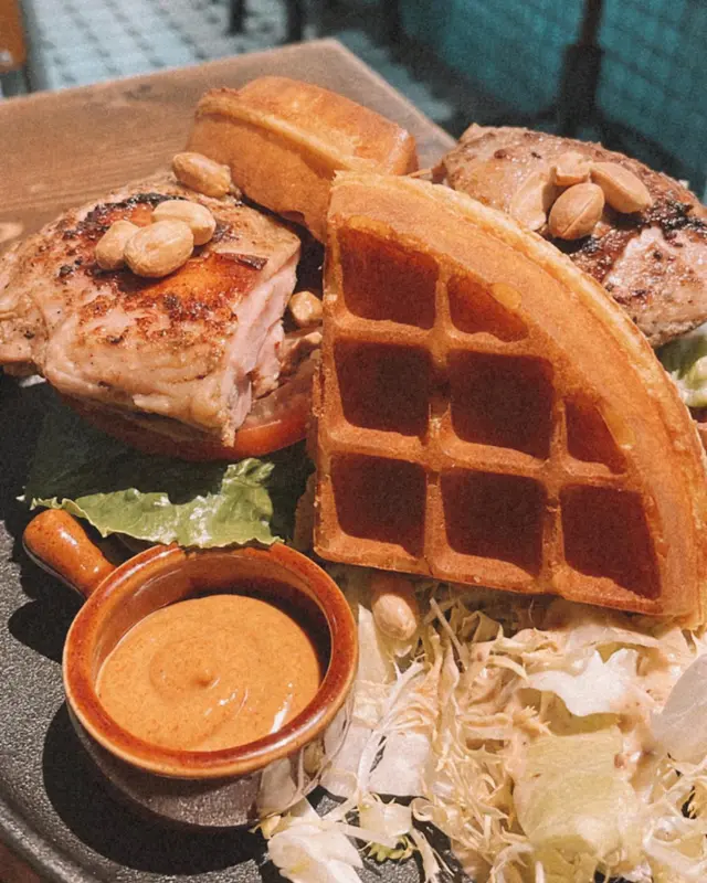 究竟有邊間café去到夜晚八半仲要等位🎟 啲食物係有幾吸引?🧐 仲要唔近地鐵站都仲有咁多人朝聖🙌🏻 既然連friend食過都讚 我又去試吓先🤪🥢slow cook saliva chicken waffle sandwich🧇 ($109)相當有驚喜嘅主食✨ 單係窩夫已經好有誠意 小小脆~ 絕對唔係海馬牌床褥嘅冧啤啤質地🙈 雞扒嫩滑 而且調味拿捏得啱啱好🔥 完全唔鹹 微辣就個個都食到 另外仲有辣醬可以疊加~ 仲有椰菜沙律 整體嘅感覺好fresh🌱 份量較大可以同friend share🫶🏻🥢homemade laksa linguine w/ tiger prawn 🦐 ($129)喇沙汁非常惹味 怕辣嘅人一定食到😗 虎蝦巧彈牙添 另外都落咗唔少紅青椒同埋洋蔥絲🧅 令成個意粉更加香口!! 我鍾意🥰另外小編📜都有做去café嘅指定動作 就係嗌杯dirty☕️ ($44) 不過嗰日晏晝瞓到懵咗 上左枱成5分鐘先知嘢飲已經嚟咗😴 espresso已經同奶撈埋晒一齊🫠 所以都冇得點comment啦🥵overall: 除咗間餐廳啲位比較窄之外 其他嘢真係冇得彈🥳 食物質素真係值得讚 而且份量係男仔都夠食😼 下次希望購大胃試埋甜品!!🥞 會二訪㗎 未來見😻…Read More