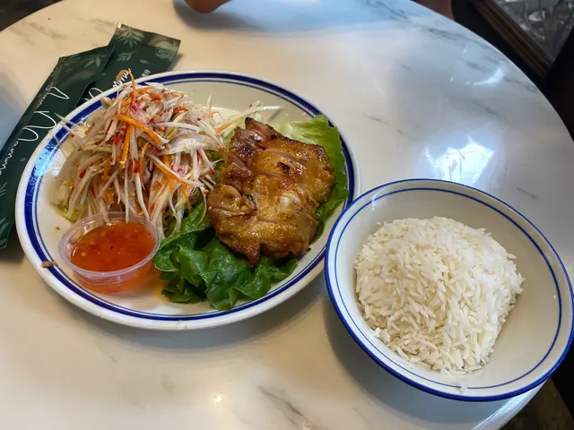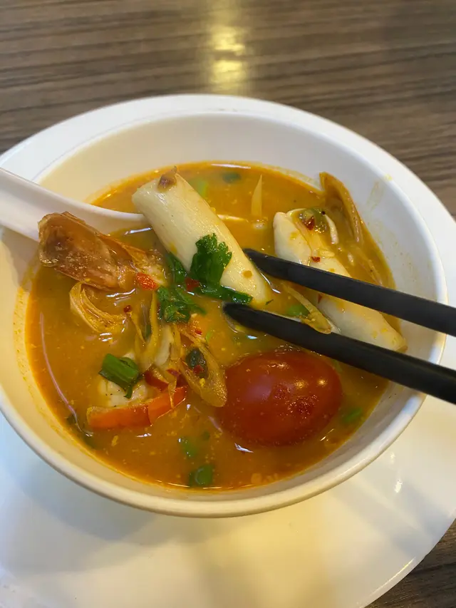 同老公lunch撐枱腳,諗住搵間舒服d坐,俾喱間鋪頭門面清新感覺吸引咗入去,入到去係泰菜館! 叫左個lunch,烤雞青木瓜沙律~估唔到仲有飯跟!烤雞好香滑,大讚青瓜沙律,酸甜開胃好爽口,平時沙律係伴菜但喱到份量好足,完全充滿泰感!老公叫左個椰汁雞湯配白飯,開初以為係湯,但上枱係大驚喜!椰汁味極濃煮雞,連唔好喱類食品既老公都話要encore! 汁煮得好好味極好送飯!餐廳仲有好多特飲,叫左杯籃蝶花飲品!真係可以慢慢坐,慢食輕鬆下…Read More