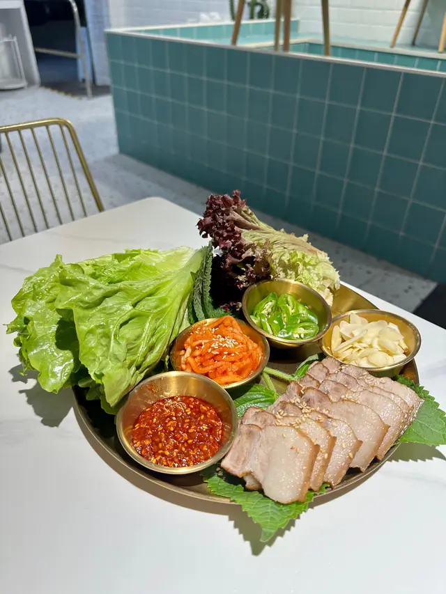 餐廳設計以韓式澡堂為主題,當中設有多個打卡位,如藍磚小浴場座位、花灑浴室擺設丶圓鏡等,感覺Relax ~韓式豬肉包菜套餐🥬🐷套餐份量都幾多,夠晒兩個人食😋 有生菜、紅生菜及紫蘇葉;醬料就有蘿蔔、甜芝麻泡菜條、秘製辣醬、蒜片、青椒。用生菜包住食,以減低五花腩嘅肥膩感👍🏻又可以用紫蘇葉包住食,效果清香獨特🤟🏻🐔🍗自選炸雞半份:麻辣勁爆芫荽炸雞淋左醬汁雞件外皮都keep 到脆,份量都幾多,放入口仲要係無骨的🍲🐮韓式牛肉部隊鍋有芝士腸年糕串、厚切午餐肉、泡菜、茄汁豆、菜、芝士同肥牛,另配有雞蛋同辛辣粉😍材料好豐富加埋香濃的湯底,夠晒飽,擺盤相當精美,打卡一流,冬日暖胃又暖心。宇治抺茶紅豆牛角酥窩夫 抹茶醬夠濃厚,紅豆一粒粒口感夠淋紅豆的甜味又剛好中和了抺茶的回甘味,是完美的配搭。牛角酥窩夫帶點脆,加埋抹茶紅豆醬的creamy,一啖咬落去,口感好正藍柑橘白桃梳打特飲 藍色加紫色的特飲,外觀夠吸引,非常吸睛白桃味比想像中重,但食過重口味的主食後飲又夠清新解膩😙…Read More
