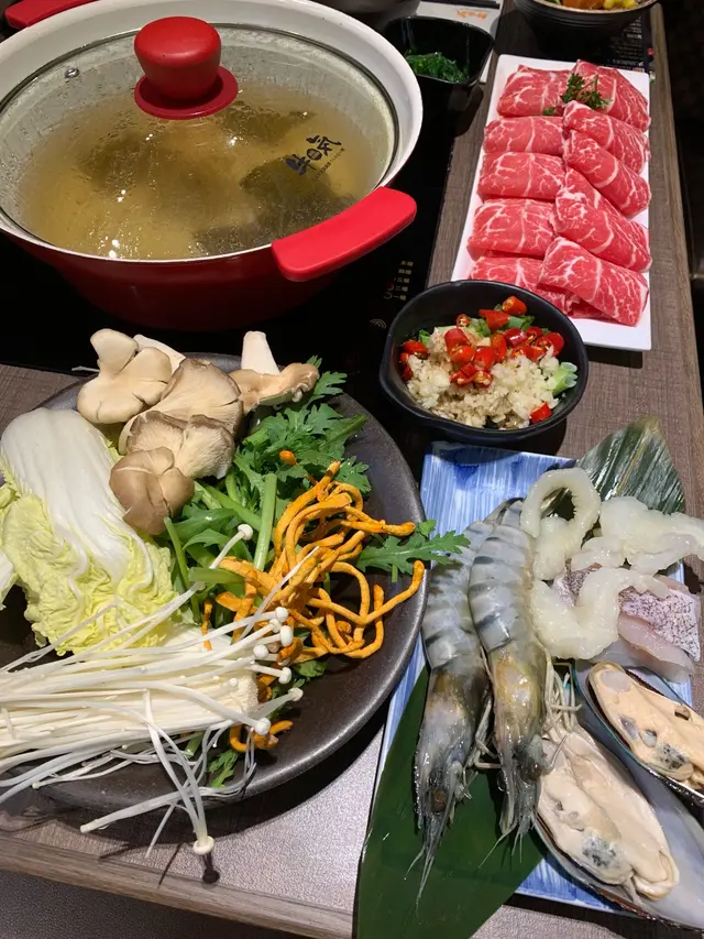 今年已經嚟咗第三次了,服務好,食材非常之新鮮。每次入到呢個餐廳分店都好似入咗園林仙境咁,好養眼,好relaxing。 我自己成日返嚟嘅原因有幾個:1. 正宗滷肉飯 (可任添)2. 湯底真材實料3. 食材夠新鮮 呢幾次encore花膠鮑魚湯作為湯底,非常之足料:有花膠件,冬菇,雞粒,鮑魚仔,幾塊雞髀菇片。 呢個湯底上枱時好濃郁,建議一開始連湯料飲幾碗,然後職員會幫手加入雞湯做火鍋湯底。 今日叫鴛鴦鍋,另外揀多一種湯底試。台式麻辣燙:有鴨血片,豆腐,少許藥材味,不算太辣的湯底。超級鐘意湯底的硬豆腐 (serve時已經煲咗好耐,表面係深啡色,吸晒D汁)。我一開始會食返一細碗正宗台灣滷肉飯(可以任添),我自己鍾意加D香蔥配滷肉飯。今次點了個細海鮮拼盤,魚柳斑塊,同牛肉片。 材料新鮮,牛肉甘香。食到咁上下,又再添多一碗滷肉飯。不得不提,大紅袍奶茶好好飲,尤其係如果你本身唔飲得奶/ lactose intolerant,呢個必試!今日有凍豆腐布丁,好食,可惜唔記得影相。…Read More