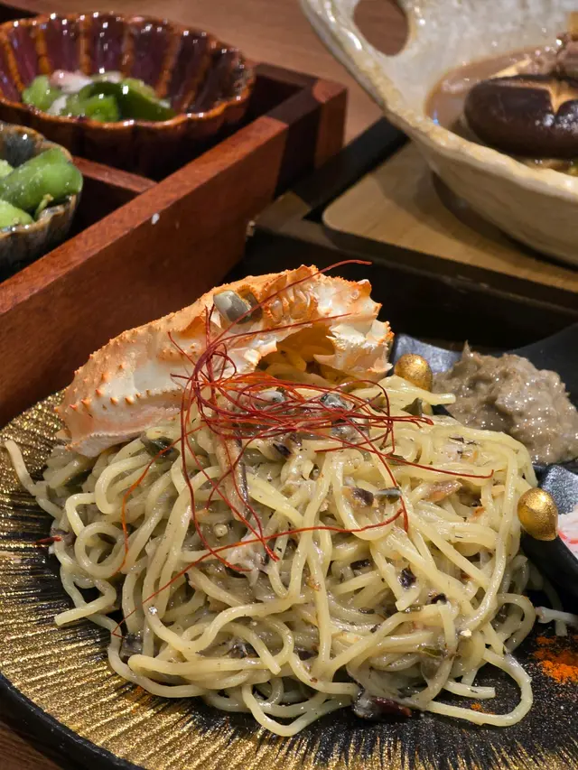 TGIF,無論平日有幾忙,星期五放工之後就應該要輕鬆下。留意翻,我講嘅係輕鬆,唔係放鬆。所以唔係飲酒發泄,complain 老闆,無限放負果種。而係舒舒服服坐喺度,淨化身心。呢間餐廳空間感十足,座位超級寬敞,而且有好多懶洋洋既熊貓公仔,氣氛真係相當輕鬆。再加上食物賣相造型都好靚,令人可以好專心咁專注食物,忘卻煩憂。 🍖我哋叫咗二人餐,前菜嘅沙律,同埋四小碟拼盤,份量適中,而且麻雀雖小,卻有住唔同嘅口感,滑嘟嘟嘅魷魚,脆卜卜嘅炸蝦仲有新鮮柔軟嘅刺身,食開咗個胃,但係又唔會過份,準備迎接主菜。 🍖其中之一系和牛鍋,湯底甜甜哋,加上非常柔軟既和牛,配合日本米嘅白飯一流,感覺食緊壽喜燒,雖然我冇席前燒熟牛肉嘅儀式,但係味道絕對可以媲美。而儀式感相對嚟講,我就喺之後嘅意粉之中尋回,蟹肉蟹膏嘅意大利粉,材料連埋個蟹殼都係另外上,自己撈埋,食落感覺特別濃郁,夠曬層次。 🍖最後梗係唔少得甜品同飲品,其實對我哋嚟講,呢個先係主角。雪糕,紅豆,闕餅,再加一粒顏色鮮艷嘅車厘子,冇味得嚟超啱影相。仲有兩杯綠茶飲品,超滑超濃,我哋特登揀一個軟雪糕,一個硬雪糕,影相靚得黎,又有唔同口感。 總括嚟講真係好鍾意呢度輕鬆嘅環境,醉完之後就係充咗電嘅感覺。 ..…Read More