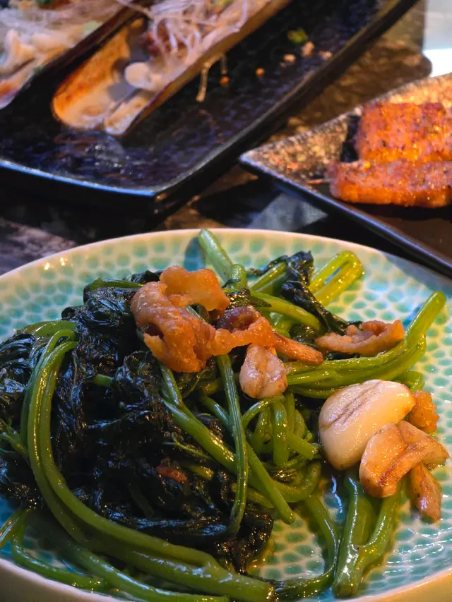 Jennie 講得好, it's gonna be f****** hard. 人生真係好難。有一日放工我抬頭望到呢個餐廳,我自然咁產生左共嗚。而且自己加咗個標點,"人生有限,杯"。 🍖賺錢咁辛苦,一定要飲翻杯,啤酒買一送一,再飲白桃烏龍,已經一解千愁。 🍖叫串燒本來係助酒,結果繫好食到變咗欲罷不能,到最後叫到成台係。先從海鮮類講起,蟶子同埋蠔,絕對新鮮,飽滿彈牙,加埋必放嘅蒜蓉,更加系香氣四溢。椒鹽九肚魚,港式嘅名字,日式嘅處理,薄脆嘅天婦羅外皮,包住切開啱啱好一啖一啖嘅九肚魚,同衝擊視角,大大件嘅鰻魚飯糰都係送酒恩物。飯糰嘅紫菜仲係自己可以包,保證最脆嘅時候去食。仲有燒白鱔,個皮燒到超香又脆,肉質爽彈。然後系蝦多士,我鍾意佢保存到傳統嘅蝦多士味道之外,順便加少少炒蛋,所以覺得零舍唔會有油膩感,顏色仲因為咁樣特別提升。 🍖肉類,我哋揀咗五花腩豬肋肉同埋雞腎,兩種豬肉一肥一瘦,各有特色,尤其充滿油香嘅五花腩,同啤酒一齊飲,真係爽皮。雞腎就好有口感,索索聲。 🍖最後系蔬菜,雞油炒番薯葉,啲油突顯到蕃薯葉嘅鮮嫩,但係又唔會太油淋淋。菠菜捲隔住芝士,竟然可以突顯互相嘅味道。最鍾意系燒淮山,點佢個特別秘製醬,零舍驚喜,有清新嘅感覺。 呢度嘅氣氛又好好,餐廳中間就係即燒嘅Bar 枱區域,睇住啲廚師一路咁燒,客人一路咁食,好有氣氛,但係又唔會烏煙瘴氣,好貼心咁喺客人前面都會有玻璃擋住。而我哋坐另外一邊就有無敵街景,所以各有各氣氛。…Read More