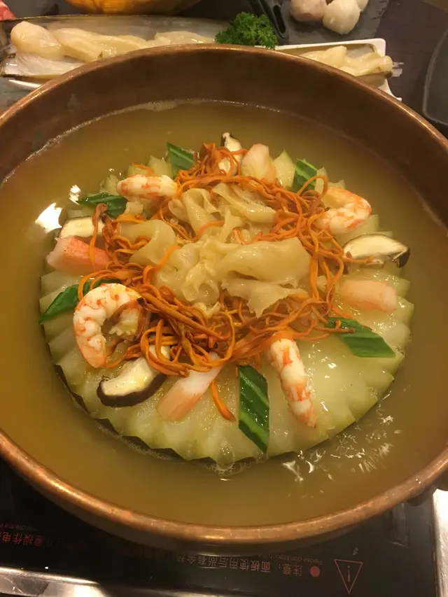 之前屋企人去過火鍋煮場,話估唔到深小埗有高質邊爐。某日同朋友去完黃金買game就即興去試下。去到店面不大,但就同外面好似兩個世界。裝修新淨,座位又闊落。見天氣咁熱,我地就揀左瑤柱花膠上湯冬瓜鍋。餸菜陸續送上,但係個鍋就未滾,由於佢個煲係全密封,睇唔到入面,搞到我地勁心急。幾分鐘後,店員話夠鐘啦,一打開個蓋,我地忍唔住嘩左出黎!完全無想像過個湯底咁靚!冬瓜盅咁,有冬菇,蝦,大量蟲草花同花膠,店員切開個冬瓜之後,仲有好多瑤柱浮出黎,超級足料。脆炸午餐肉店員落力推薦,所以試下!本來一直都覺得都係午餐肉者,但原來係切成長條狀再炸。咬落脆卜卜,輕輕浸一下湯可減淡油膩感。即炸紫菜響鈴無論賣相定味道都好正。腐皮同紫菜都炸至脆口,配上紫菜的響鈴比平時普通響鈴惹味,吸埋湯後更正!特選美國穀飼牛肥瘦適中,肉色血紅。肉質軟淋。紐西蘭蟶子皇超大隻蟶子洗得好乾淨,完全無沙。另外仲配了粉絲,一齊入口,蟶子鮮味十足。自制三色餃水餃,雲吞,韮菜餃隻隻都漲卜卜,皮薄餡靚。烚完咬開完全吸收了湯底精華,讚!手打孖寶蝦丸,墨丸兩款手打丸賣相同平時食的分別不大,但入口即感到誠意。超彈牙,而且每一口都有咬到蝦肉同墨魚肉。芋絲 野生竹笙有靚湯底就當然好味呢兩樣野我平時打邊爐都必食但完全冇試過份量會咁多蘆薈蜜清甜而且嘮啖蘆薈肉,有咬口。生日月份like fb有刺身送,食落又幾新鮮咼!雖然得兩個人,但食物份量比預期大份,我地博命食都食唔哂。湯底入面的料都好多,蟲草花係吸左湯汁後意外地好味。另外要讚下服務,店員都好貼心,加湯,收碟,又會提我地配料烚幾耐等等。…Read More