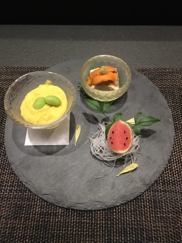 好喜歡食omakase嘅朋友又搵到新野,即刻去試下。位於銅鑼灣亨環,可能棟大廈仲新,大家無特別留意,但原來入面有好多餐廳選擇呢。電梯門一開就見到濃厚的和式裝潢,omakase胃口立即ready!!晚餐餐牌主要有「雲」、「丘」、「川」三款,第一次黎,我地就叫左價錢較低的「雲」試下。有前菜、壽司12貫、料理、吸物、果物~前菜3點海膽生湯葉生湯葉亦豆腐皮,口感於豆腐和豆皮之間,豆味濃郁;再加上新鮮海膽,入口鮮味!黃金粟米蓉以新鮮粟米磨成蓉,口感幼滑,非常清甜。明太子西瓜以青檸皮承托着明太子,賣相似西瓜,味道惹味,好特別呢!之後就到壽司了!一邊看着師傅將魚生切片,手握飯團,無論視覺同味覺都照顧到。左口魚色澤精瑩剔透,肉質鮮甜爽彈,沾上柚子汁,味道清新醒胃~針魚肉質結實,味道鮮甜,油脂豐富加上小量薑點綴,減輕油膩感。深海池魚肉質較軟,但厚切的魚肉令咬落口感增加,再散出淡淡油脂香,正!赤貝鮮甜爽脆伊佐木味道清爽甜美,配上黃金烏魚子添了點點鹹香!牡丹蝦極新鮮,肉質腍滑,配上蝦子更帶出鮮味然後係中場休息金線鯛拌海膽汁金線鯛外皮連魚鱗炸成金黃,魚肉鮮甜又有嚼勁,平時不吃魚皮的我都對魚皮另眼相看。沾上海膽汁,味道更加提升!旁邊還附上本地農場種的舞茸菇,菌味十足。轉眼間又回到壽司部分啦~金目鯛肉質豐厚嫩滑,油脂豐富肥美,表面輕輕燒過,味道更鮮。帶子超大隻帶子,肉質厚重,灑上竹炭鹽和柚子皮,肥美帶點清新!喜之次油脂豐腴,炙燒過的魚肉把魚油香迫出。活北寄貝口感爽脆,味道鮮甜!赤鯥 三大名魚之一!先用火槍炙燒外皮,釋出油脂,肉質鮮甜。呑拿魚腩拖羅只睇賣相已經見到非常肥美!配上洋蔥絲平衡膩感,入口即溶,好想添食呀!左口魚邊裙邊有嚼勁,咬落爽甜。魚油濃郁甘香,不錯。大蜆清湯清湯香醇,中和一下壽司的膩感。大蜆多肉無沙,正!師傅特別介紹新鮮到貨的北海道馬糞海膽,當然不能錯過啦!原隻海膽即叫即開,海水味十足,加上白蝦和三文魚籽,超正。日本富有柿日本柿當造期,口感爽身,果肉像有一層糖水薄膜包住,甜而不膩!…Read More