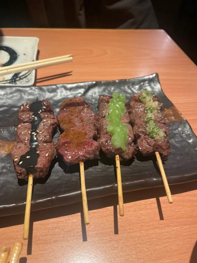 燒牛內臟係店家主打,好多菜式都係出面少見;初次嘗試左牛骨髓,口感係粉粉地 同我預期嘅口感唔同~但帶來味蕾上嘅新鮮感🤣最好味嘅係燒牛舌,厚切,燒出黎彈牙多汁,其次最推介嘅係冷烏冬,面有咬口,仲配左一個生鵪鶉蛋,撈落凍烏冬食清新開胃✨另外有order左明太子燒飯糰🍙,燒到表面脆卜卜有種焦香,係口感紮實嘅飯糰睇黎佢地嘅「副產品」,唔係主打嘅燒牛內臟更深得我心,不過個人覺得性價比稍低,但環境同服務都不錯,適合同朋友小聚傾計。…查看更多