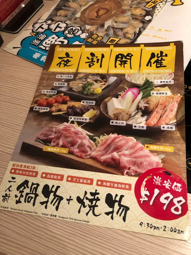 放工去旺角睇反斗奇兵4,行到戲院附近,見到有間打邊爐,有海鮮食,價錢又唔貴,就入左去,食得多,咩清湯、麻辣、沙嗲都食到唔想食,所以今次揀左壽喜燒湯同埋海鹽牛油海鮮湯底。呢到係一人一爐,我地叫左個二人前,好多野食,海鮮有大𧎚,生蠔,帶子,大🦐新鮮啖啖肉,生蠔肥美,另外有肥牛,豚肉,我略嫌肥牛一舊舊肥膏,豚肉比較好,肥瘦適中。仲有燒青魚或魚頭,我揀咗燒魚頭,外脆內軟,能夠保持肉汁,鮮味。仲有串燒,同樣外脆內軟一啲都唔馬虎。叫咗一罐蜜桃酒同埋巨峰提子乳酸梳打。最後梗係要食埋甜品啦,抹茶卷蛋,綠茶味濃唔會太甜😋總括黎講,d料新鮮,湯底可以有唔同選擇,呢個價錢有咁多嘢食都算抵啦。服務態度亦都非常親切,質素仲要唔差。…Read More