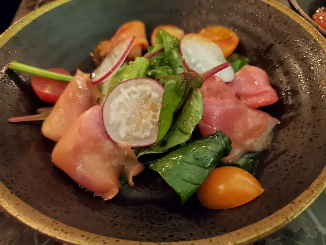 城中最著名吃Prime Rib的餐廳非Lawry's莫屬。美國的元祖店已有超過80年歷史。早就想一試呢間餐廳,所以趁生日前預訂了HSBC Premier Dinner Set,$1388兩位。餐廳位於中環,內部裝潢典雅,但有點舊。侍應服務很好,入座時要了支still water,索價$95一瓶。餐前有杯柚子清酒泡沫作開胃小品。麵包有水準,暖身且外脆內軟,牛油亦好香。頭盤為海鮮三重奏,有魚子醬藍蝦他他、帶子撻和蟹肉牛油果卷。當中以藍蝦他他最好食,生蝦爽滑,份量足,配上魚子醬和豉油汁更顯鮮味。冰旋翡翠沙律為Lawry's其中一道招牌菜,十分講究溫度。侍應先派冰叉,然後即席把沙律菜放入不鏽鋼碗,並於碎冰上旋轉拌勻食材。沙律菜爽脆,並有車厘茄和紅菜頭絲,佐以些利酒沙律醬。如果以煙肉代替紅菜頭絲就更合我心水。經典大蜆周打忌廉湯 - 大蜆有4大隻,十分鮮甜。湯也充滿大蜆和洋蔥的甜味,十分好飲。上主菜前先來個青檸雪芭清新味蕾。主菜燒牛肉選了medium rare,由廚師推出招牌不鏽鋼餐車,並即席切出美味的燒牛肉,並配有yorkshire pudding和薯蓉作配菜。燒牛肉嫩滑,肉味豐富,但沒有想像中juicy,可能點rare會比較好。Yorkshire pudding偏鹹和乾,唔太好食。另一道主菜為香煎石斑魚及燒八爪魚。燒八爪魚有碳燒味,軟滑不韌。石斑肉質就比較嚡。甜品為椰香鮮蜜瓜,像蜜瓜肉糖水加上椰子雪糕。味道普通,個人不太喜歡。由於是生日的關係,侍應邊唱生日歌邊送上蛋糕,蠻有儀式感。生日蛋糕都好食,甜度適中且忌廉不多。…Read More