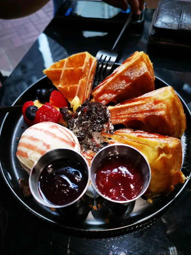 今日路過旺角, 家姐提起不如去食tea! 咁啱附近廣華街有一間新開型格 cafe - Black Coffee, 佢話每次行過都大排長龍架。今日唔算太多人, 而且平日 3:00 - 6:00 pm, 有 tea set, order 任何 dessert, 送 $40 之下飲品, 如果貴過 $40, 另補差價。家姐叫左 Berry Berry waffle, 有 custard, strawberry 醬, blueberries 醬, 新鮮 berries, 好靚啊, 又超好食! 😋😋我 order 左 souffle pancake, 都好好味, 面頭有焗千層酥, 鬆化好食。Souffle 充滿蛋香。…Read More