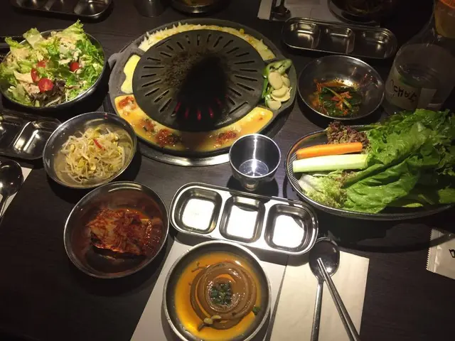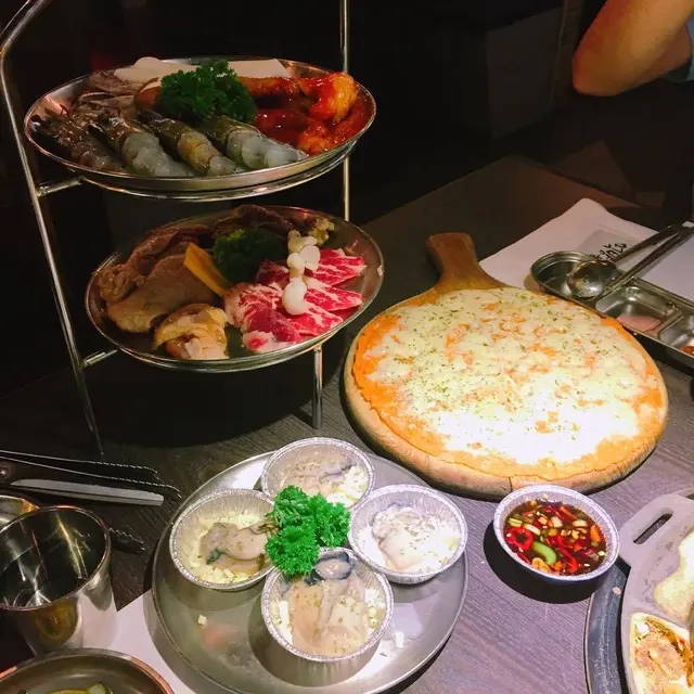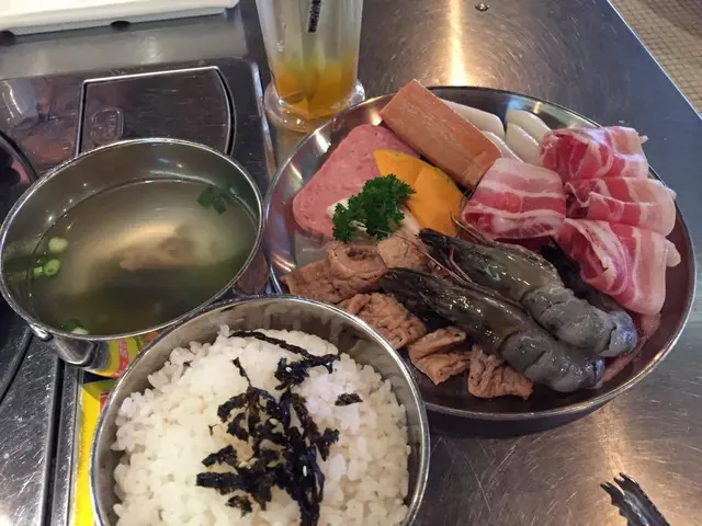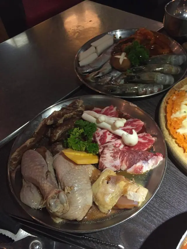 元朗韓式燒烤很多區內有名又不是連鎖的紅有兩家, 是鄰店, 一家食燒肉, 一家沒燒肉我們是吃燒肉那家 韓食基本麥茶和拌菜, 茶不錯, 拌菜沒什麼特別我們7個人點了4人套餐+兩個菜有烤牛肋排, 五花肉牛肋排是韓式燒烤醬的味道~烤起來非常香, 加上肉質不錯, 吃不停口五花肉相對失色, 很普通還有烤雞~不錯吃海鮮煎餅從來不是我杯茶, 不過不失另外有石鍋拌飯~拌飯醬好吃是成功的一半拌飯醬是自己加上去的, 味道能自己調節所以這個會好吃~韓式炒粉絲也是甜甜的味道但也好吃套餐以外加點的蔘雞湯~這個出奇的好棒蔘味濃雞肉嫩~水冷麵不過不失沒吃到梨子就是差一點總說, 4人套餐超抵, 不止4人份量唯一是味道偏甜, 所以感覺全部味道都差不多~…查看更多