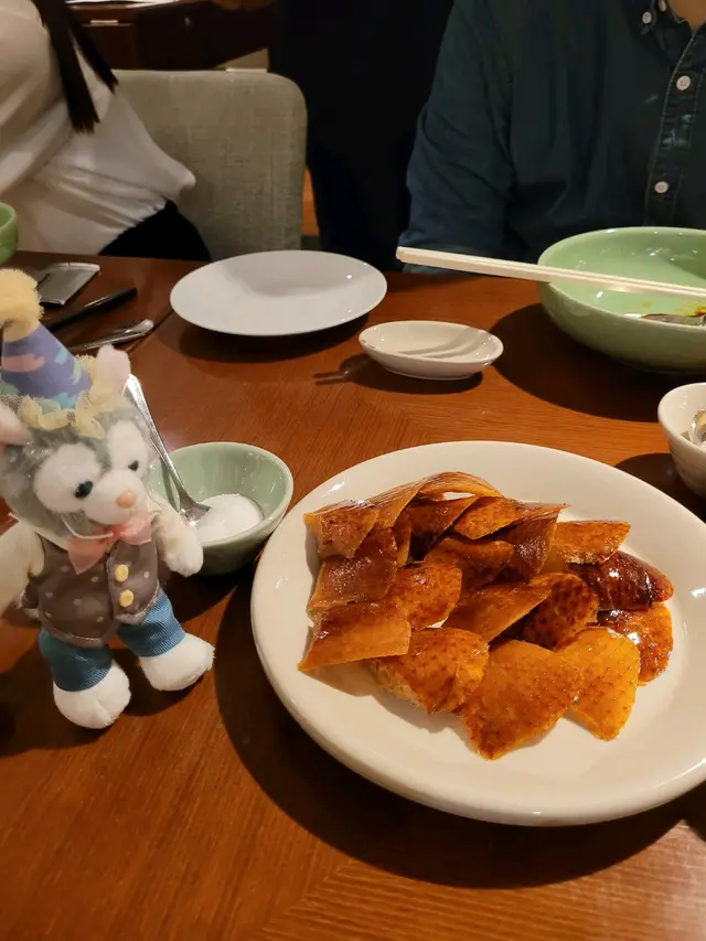 弟說這餐廳的北京烤鴨好吃,預先訂了一隻一鴨三食。廚師出來在我們面前切鴨,這鴨真的不錯,皮脆到廚師切時都聽到聲音,肉嫩不膩。可惜我還是喜歡古琴雅苑的梅子醬。鴨湯很鹹,鴨味不足,下次可能點一鴨二食比較划算。脆到片出聲的烤鴨皮烤鴨肉嫩半肥瘦的烤鴨肉,另一種口感我們還點了炒芥蘭,咕嚕肉,鱈魚粒炒飯,每款都美味,炒飯比較特別,因為鱈魚粒炸過才炒,魚肉鬆脆,但沒有油炸味,值得一試。鱈魚粒炒飯吃飯後,弟妹去拿蛋糕。蛋糕出來非常驚豔,整個薄荷綠色,是抹茶紅豆味,小東尼坐在上面啊!還有金色的迪士尼城堡生日牌和粉色膠氣球裝飾,超可愛!弟妹真的很聰明,在酒店的餅店訂普通蛋糕,再自行放公仔上蛋糕,不但省了切餅費,也比直接訂一個卡通蛋糕便宜,比普通的卡通蛋糕漂亮,吃完蛋糕後,那隻公仔又可以變成擺設。今年過了很難忘的生日。…Read More