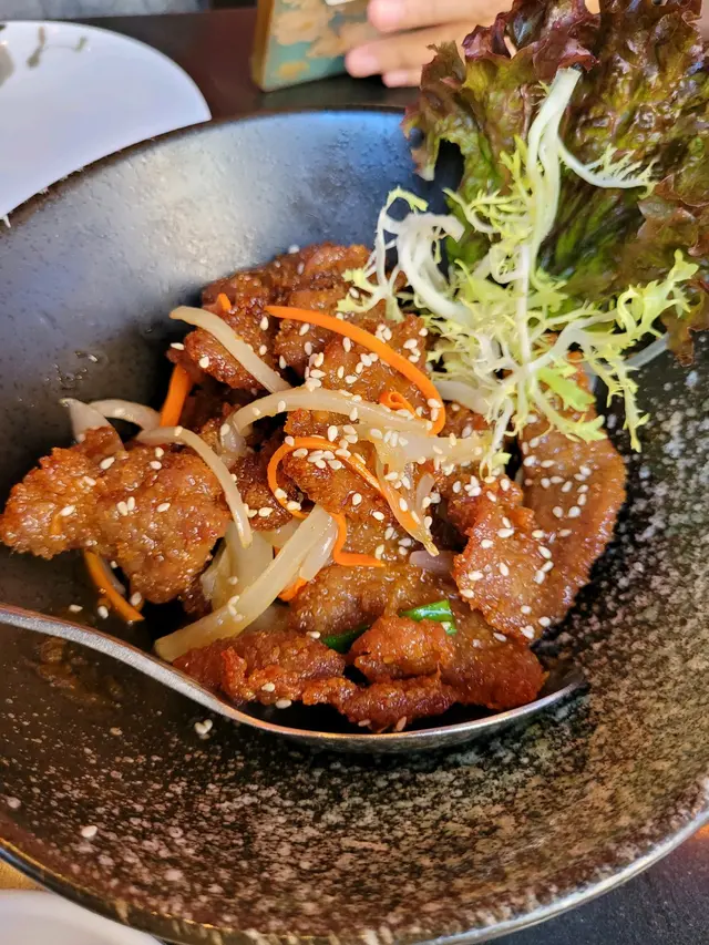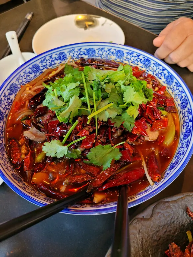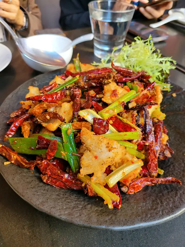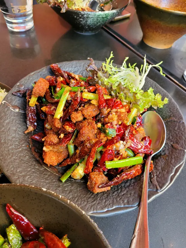 中午慶祝客人的21周年結婚紀念,我們去了“呇”這間四川菜餐廳午餐。我們點了鳳梨咕嚕肉,辣子雞,孜然羊肉粒,薑牛,雞絲粉皮,水煮牛肉,雞絲炒飯。其中兩個是套餐,送可樂。薑牛不太辣,偏甜,肉嫩。辣子雞,跟一般川菜餐廳差不多。水煮牛肉,牛肉嫩,入口不太辣,吃多了開始麻。雞絲炒飯,不能吃辣的可以吃這個,但跟一般餐廳的差不多。干扁四季豆,香辣惹味。菠蘿咕嚕肉,酸甜開胃,不辣,肉炸得脆,沒油味。我最喜歡孜然羊肉粒,羊肉跟孜然味很搭,肉嫩又炸得酥脆,肉不太膻。雖然客人很能吃辣,但我們不太行,所以只點了小辣,但它的辣卻有後勁,入口時小辣,吃多了,辣度就增強了。客人喜歡雞絲粉皮因花生醬味濃郁。沒想到辣味跟可樂很配,可惜可樂不夠汽,不然更好。我們說是慶祝結婚周年紀念,不過餐廳沒送甜點。這家米芝蓮餐廳的質素中上吧,沒有難吃的,有些川菜是外面餐廳沒有的,例如薑牛,喜歡川菜的人可以一試。…Read More