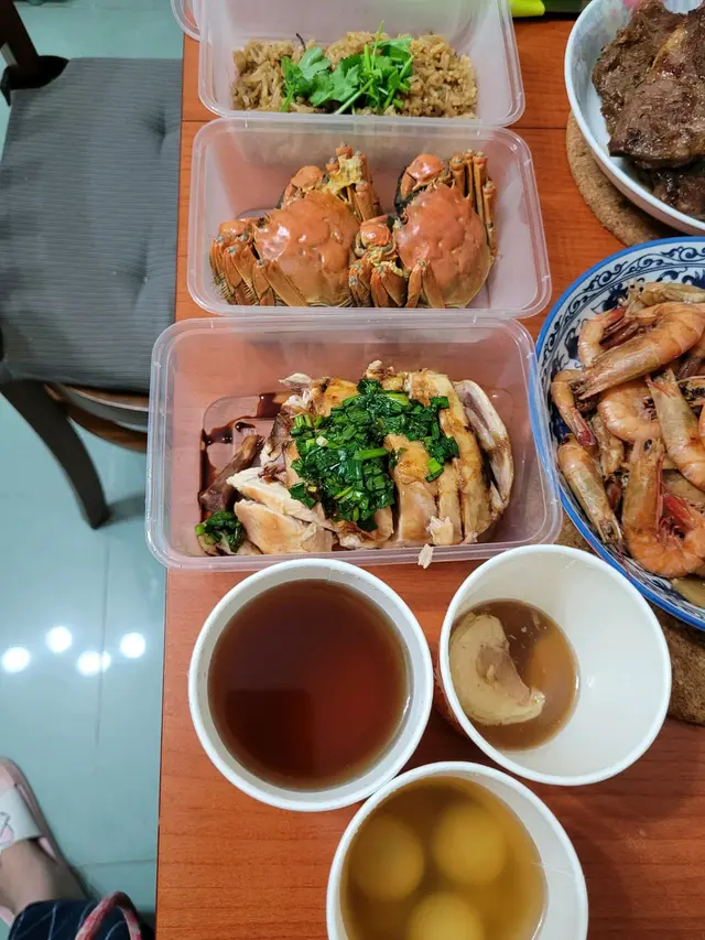 弟今晚回家吃飯,我在852工房買了一人大閘餐回家加菜。沒想到這一人餐這麼多菜,前菜是酒味滿瀉的醉雞兩件,主菜有大閘蟹2隻,一碟蔥油雞,一碟蟹肉炒飯,甜品一碗湯丸,飲品一杯薑茶。這麼多食物,才$160多。大閘蟹不算大,但蟹膏挺香。雖然我喜歡吃大閘蟹,但很懶拆蟹,所以2隻便夠了,吃太多,好吃也變普通,沒有留戀。比起以前只愛吃膏,現在更喜歡中間帶膏的肉,一梳梳的鮮甜蟹肉沾上蟹黃蟹味更濃,用蟹腳尖戳出蟹鉗中的肉來吃很滿足。有些人吃大閘蟹只吃蟹黃,以為大閘蟹無肉吃,其實中間的肉也不少,吃盡每絲肉要很耐心地拆,人們大概懶得拆而錯過美味的蟹肉吧?蔥油雞的蔥很入味,雞肉嫩,家人吃光了。蟹肉炒飯的蟹肉不多,薑味比較突出,我喜吃薑炒飯所以也吃光了。湯丸跟薑茶味道一般,好處是不太甜,合我口味。這個一人餐算抵食,不過等外賣時看堂食只有兩枱,如果你想吃大閘蟹又不想吃太多,這個餐值得一試。…Read More