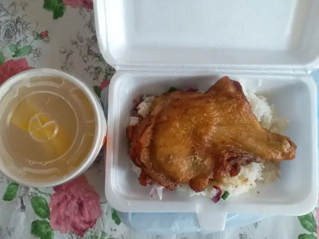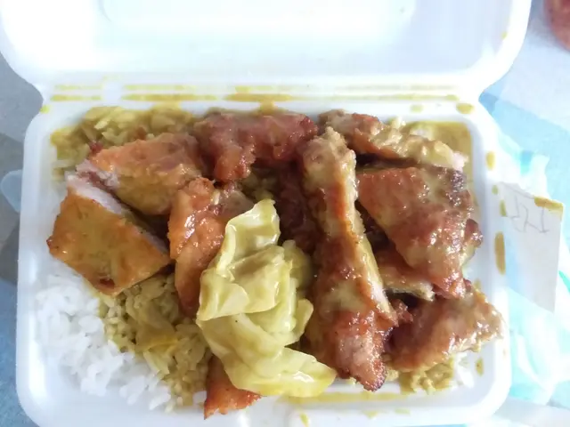 呢間鋪頭嘅豬扒出名, 一直想試, 但都撞唔岩時間, 星期日唔開, 平日1點先開。 今日終於遇岩時間, 天時暑熱, 先去附近買杯野飲, 電話落定外賣order, 兩三個字之後去到, 岩岩好有得攞。叫左個咖哩豬扒飯 ($48), 個人認為份量岩岩好, 豬扒果然有水準, 喺咖哩汁中, 依家保留少少脆口, 豬扒好食!!