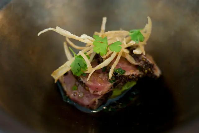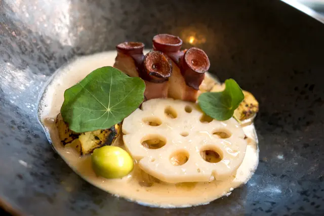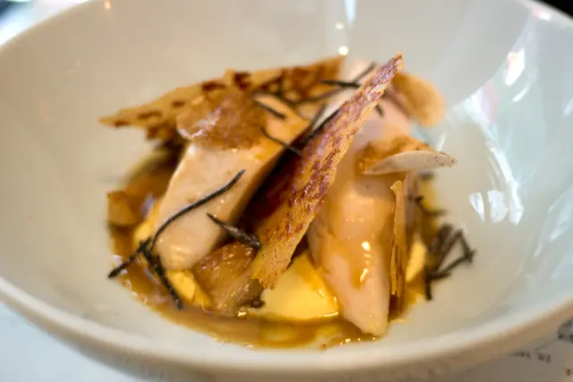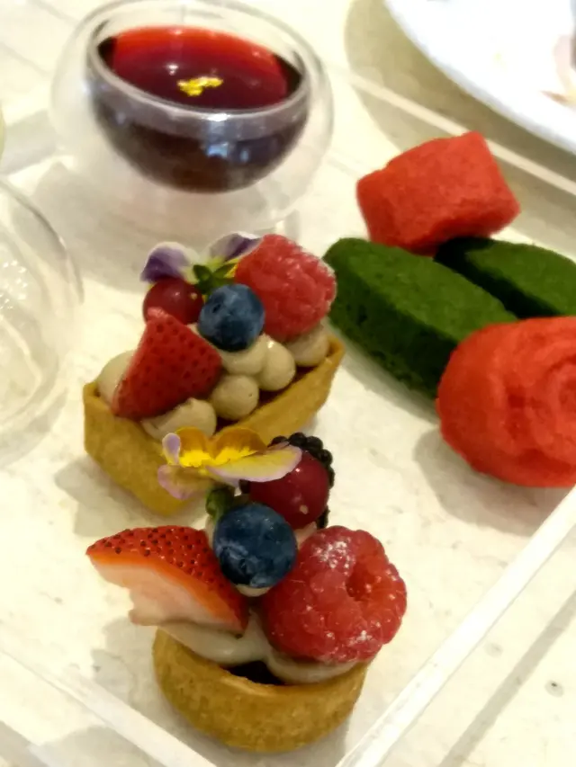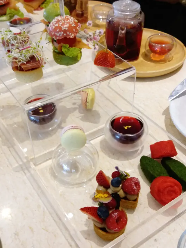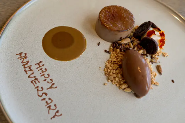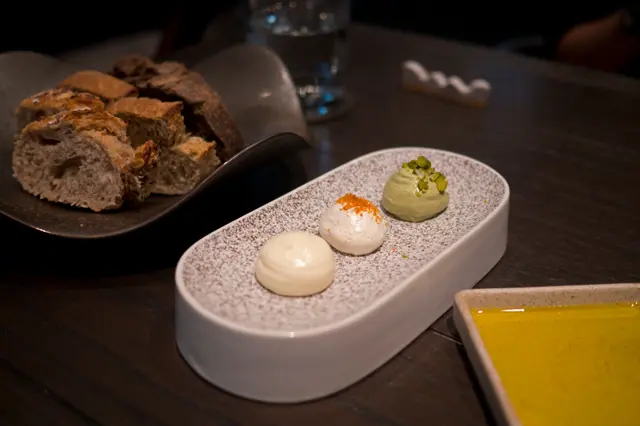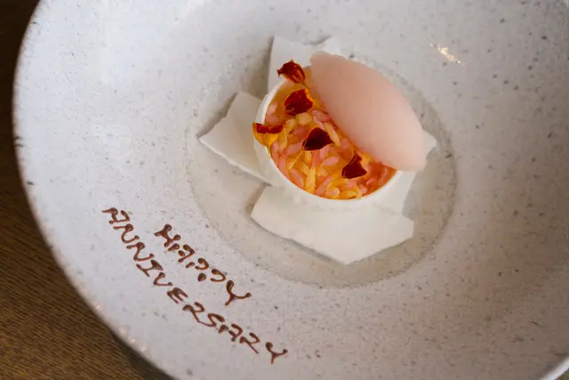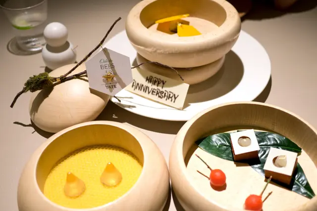 We went to Roganic to celebrate our anniversary. The overall experience was great, except some irregularities.We booked thru the online system and everything worked fine. The hostess called us one day ahead to tell us they don't do writings on dessert plates. But they'll send us a small piece of cake for free instead. Upon arrival, we were led to the counter seats overlooking the pastry kitchen that we requested.Business lunch with 3 courses costs only HK$320, which is a steal given the service and the quality of the food. For drinks, only bespoke choices are offered. I ordered an Anvil pale ale brewed by Unsworths Yard for Simon Rogan, which is tasty -- honey, malt, hops, and a hint of fruitiness. My wife ordered a yuzu green tea fizz and she loved it. The amuse bouche is pea and nori tartlet, fresh cheese, yuzu kosho, to be picked up with our fingers. Here comes the first miss in terms of service -- there was no hot towel (or even alcohol wipe). My wife went to the washroom to wash her hands and I had to use my own hand rub. Back on to the food, it has an interesting contrast of textures -- crisp nori seaweed cup and peas that pop in your mouth. The flavours are also nicely contrasting -- the spicy yuzu kosho and tangy cheese work so well with the sweet taste of the peas and earthiness of the nori. It started the meal on a high note.For starter, I ordered the duck leg terrine with plum sauce, pickled onion and greens. Again, it rendered a nice combination of different flavours, with a subtle nod to the Cantonese roast duck.My wife ordered the smoked blue mussel with pineapple tomato. This dish was just divine. The mussel was plump with a semi-cooked texture. The tomato provides a fruitiness to cut through the richness. The herb-infused oil (basil?) makes it aromatic.Instead of baguette or buns, soda bread is served instead. It tastes more like muffin than bread. But it doesn't steal the thunder from the cultured butter, which is so nutty with a caramelly depth.For main, I chose the Te Mana lamb two ways: the loin is seared with a pink centre. It's juicy and tender, with perfect doneness. The brisket is slow-cooked with spices and herbs. It's fall-off-the-bone kind of tender and has complex flavours and depth. I love both of them.My wife ordered the red bream and she liked it. I had a bite and found the fish a bit dry. I think it has more to do with the natural texture of the fish and not a matter of doneness. I personally love the lamb a whole lot more.For dessert, my wife ordered the black tea custard tart with condensed milk ice cream. The custard bursts of Earl Grey flavour and is silky smooth. The ice cream is surprising salted, and that cuts through the richness nicely with an element of surprise.I ordered the Tunworth cheese ice cream with lingonberry jam and truffle honey (the bowl at the back). It's covered in a tuile wafer that adds extra texture. Flavour-wise, the tangy cheese works well with the fruity berry and the earthy taste of the truffle honey. It's rich, but well balanced. The chocolate truffle cake in the front is the gift on the house. Actually, among the complementary cake we get from restaurants on special occasions, this is the one most intricately made. It tastes good, but not as good as other paid desserts.Finally, the server mistook my wife's drink to be the Exton park rosé for Simon Rogan (actually ordered by our next table). I spotted the mistake and the bill was duly corrected. But still, that shouldn't have happened in a restaurant of this caliber.All in all, I love most of the courses and the business lunch set is really a good deal. Would love to try the tasting menu with the famous sea urchin custard one day.…Read More