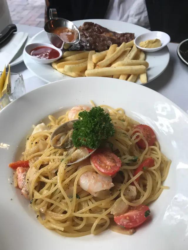 趁假期試試小店店面唔算大,應該係一人廚房但見其他食客嘅餐點賣相都絕不馬虎~今次試左佢嘅午餐有餐湯或沙律,再配主食同飲品我地揀左忌廉南瓜湯好creamy 好滑,都幾有南瓜味主食就揀左西班牙海鮮燴飯同埋牛肉漢堡配炸薯角西班牙海鮮燴飯有唔同size揀,配嘅蝦會有唔同(大size好似配虎蝦)今日就叫左個細size, 一人份量都好夠飽印象中都係70幾蚊但好多海鮮熱辣辣整鑊上台,店員都好細心提醒要小心熱味道好夠,雖然無問係咪雪櫃海鮮,但食落無雪味,呢個價錢都值門票價另外個牛肉漢堡配炸薯角我唔食牛就無試個包,不過望落塊牛都有肉汁,有齊生菜蕃茄酸瓜芝士,再配埋個豬仔包,好豐富~個炸薯角即炸熱辣辣,我就唔客氣係咁食喇另一個吸引我黎嘅就係佢個啖啖肉蟹肉餅,蟹肉餅無溝粉,啖啖肉,蟹肉餅下面仲有啲他他醬相當開胃飲品就正常味道~不過個花果茶用左靚靚杯裝感覺立即加分~今次就未試甜品,但見到隔離枱有點tiramisu同其他甜品都好吸引~下次再食😋…Read More